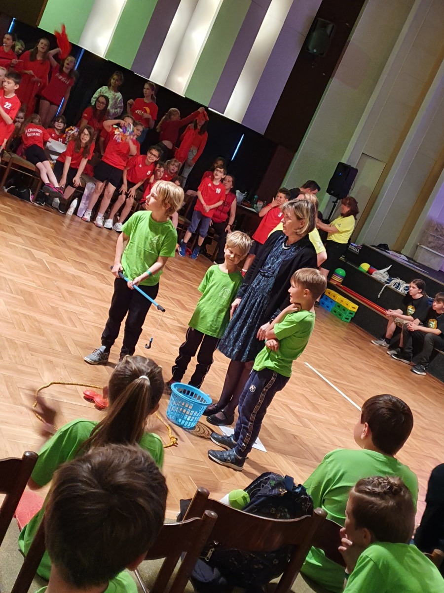 Poslední květnový den se konalo klání žáků chodovských škol s názvem O pohár starosty města. Žáci 1. B měli na poháru své zástupce v řadách soutěžících, a to Lukáše Slabého a Adama Hryzáka. Oba kluci ze sebe vydali vše, aby získali potřebné body pro svou školu. Oběma náleží velká pochvala. Ostatní žáci se perfektně ujali role fanoušků. Svým skandováním podporovali všechny soutěžící z naší školy, chvíli to vypadalo, že si vykřičí hlasivky 🙂