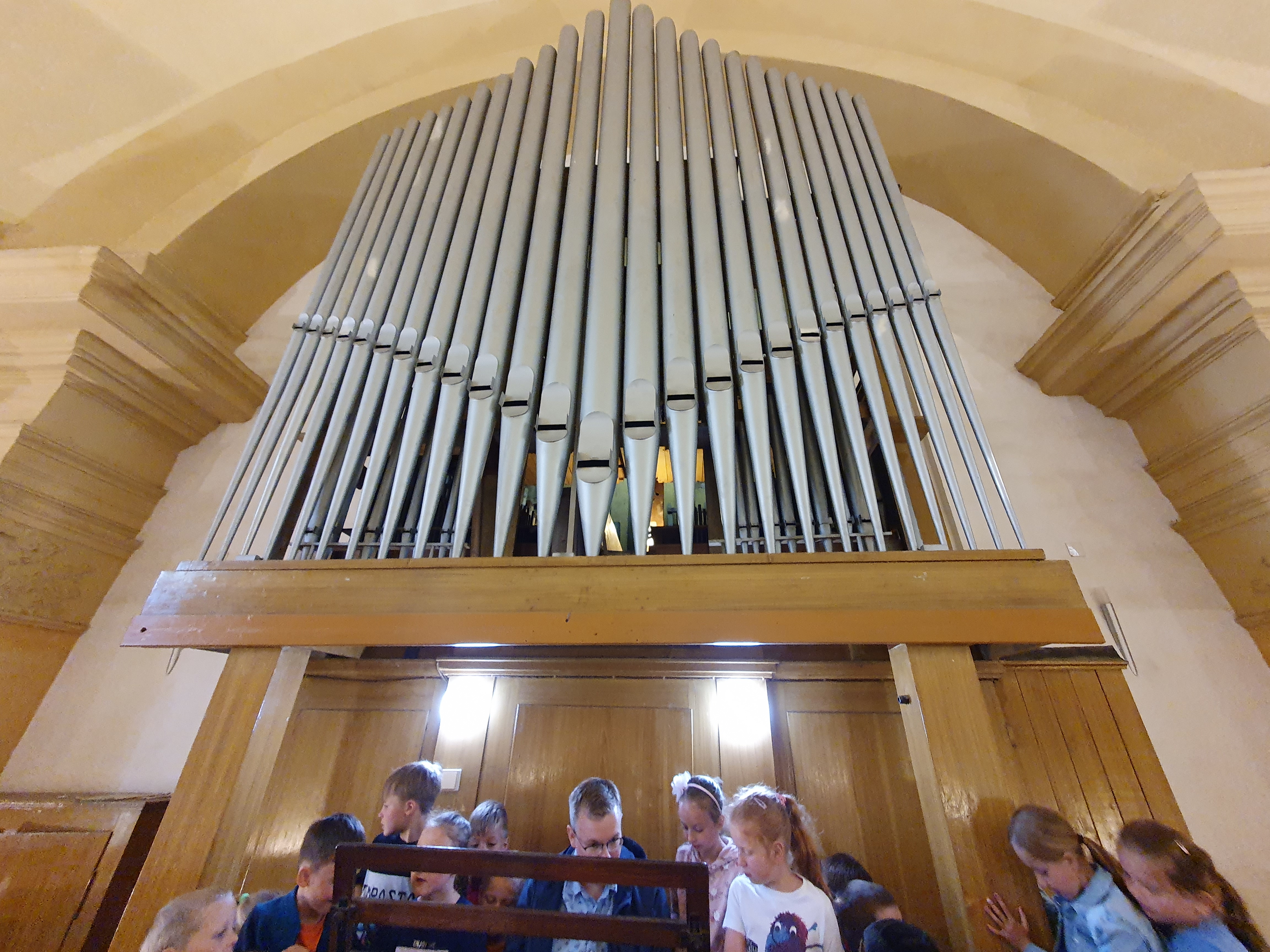 Ve středu 8. 6. jsme se vypravili na domluvenou komentovanou prohlídku kostela svatého Vavřince. Před kostelem na nás čekal pan Bělohlávek, který děti zasvětil nejen do historie této chodovské dominanty. Jeho výklad byl velmi působivý a děti hltaly každé slovo. Nejvice je zaujaly místní varhany, na které si někteří i zahráli. Touto cestou bych chtěla panu Bělohlávkovi moc poděkovat. Těšíme se na další společnou akci.