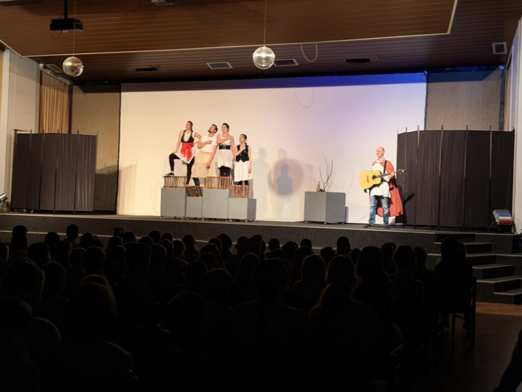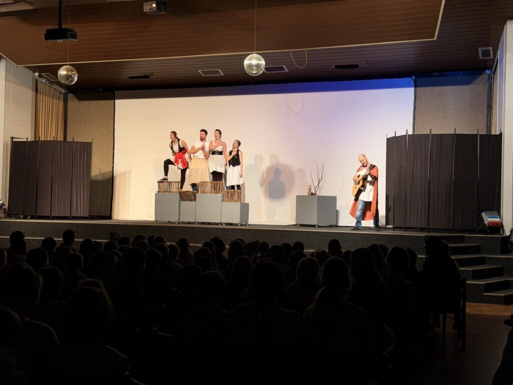 Ve středu jsme s žáky vyrazili za kulturou do Společenského sálu KASS na divadelni představení „Pověsti pro štěstí.“ Viděli jste Jumanji? My dnes též, ale v českém podání zahrané skvělými herci z divadla SemTamFór. Všichni jsme se ocitli v počítačové hře s názvem Bejvávalo a měli jsme možnost setkat se nejen s Praotcem Čechem, ale i s Krokem a jeho dcerami a dalšími několika zásadními aktéry pověstí o naší zemi. Vtipně a zajímavě uchopené téma, poutavě odehráno, celkový dojem byl…? Za mě skvělý! Nebylo tomu však u všech 🙁 . I přesto, že to nebylo nové téma, tak mnozí zůstali takzvaně stále nepolíbeni…