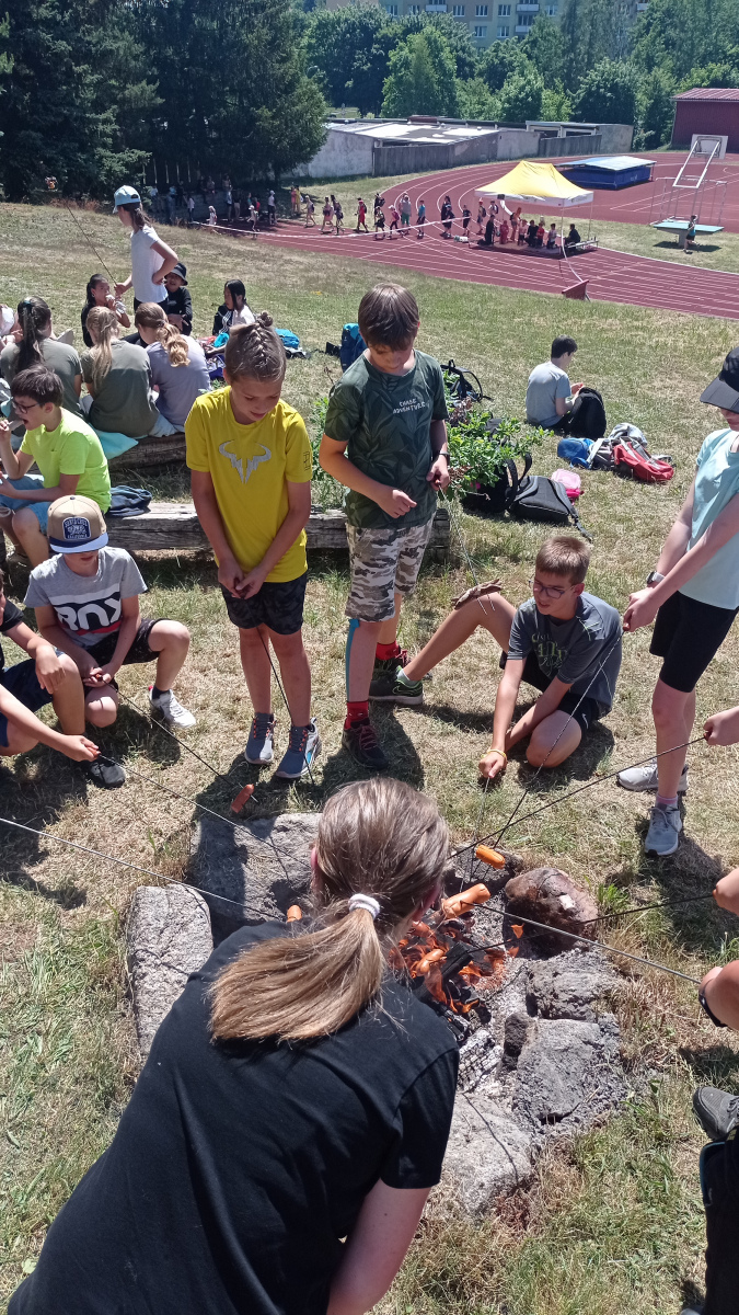 Krásnou tečkou bylo opékání buřtíků. Celý sportovní den se vydařil a všem se líbil.