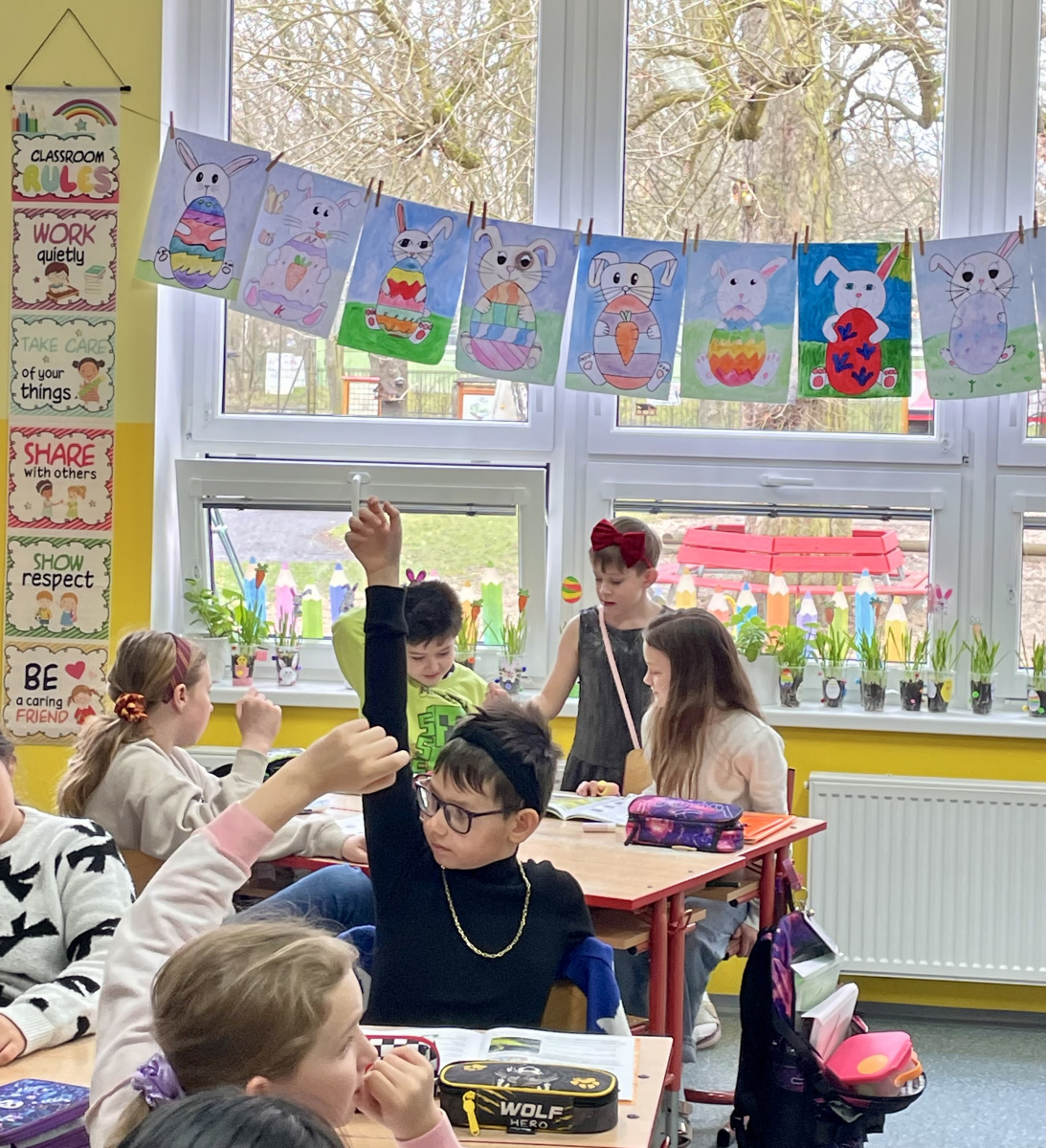 Na naší škole se konal oblíbený Den naruby, který přinesl spoustu zábavy i nečekaných situací. Kluci se převlékli za holky a holky za kluky, čímž vykouzlili úsměv na tvářích všech kolem. Některé děti si navíc vyzkoušely roli učitelů a na chvíli převzaly výuku místo paní učitelky. Den jsme si moc užili.