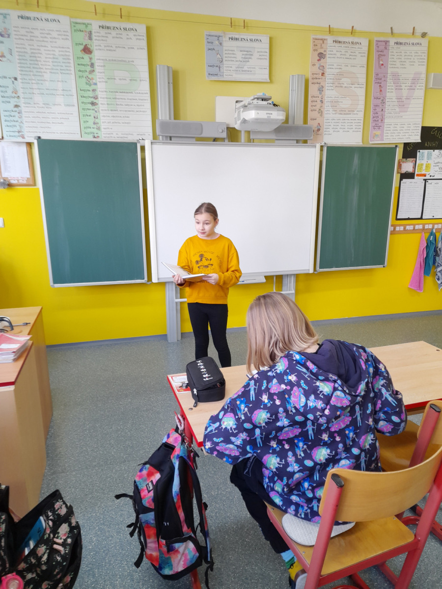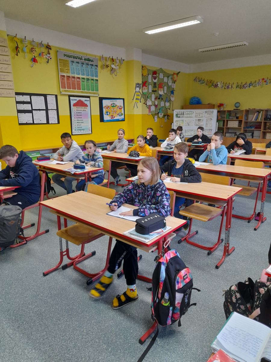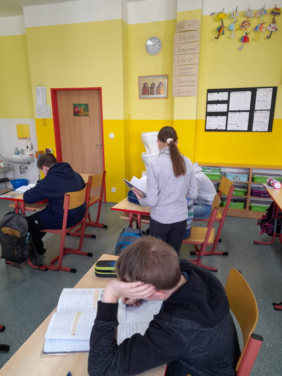 Dnes patří všem žákům 5. A velké poděkování a pochvala, protože mi dovolili oslavit Den učitelů „nicneděláním“. Učili místo mě. Připravili si samostatně hodiny českého jazyka, matematiky a čtení. Češtinu odučily Martinka Dong a Terka Bokšayová, matiku s žáky procvičili Míša Nosál a Vašek Fojtík, čtení si vzaly na starost Lýdie Vitnerová a Anetka Soukupová. Pro kamarády měli připravené opravdu pestré činnosti. Vážně brali vyučování i ostatní žáci. Plnili zadané úkoly, pracovali samostatně, ve dvojicích i ve skupinách, dokonce se hlásili. Podobně proběhly také hodiny vlastivědy, informatiky a hudební výchovy pod vedením Míši Nosála, Veroniky Školoudové, Anetky Soukupvé, Patrika Rohma, Marka Matouška a Víti Hořínka.