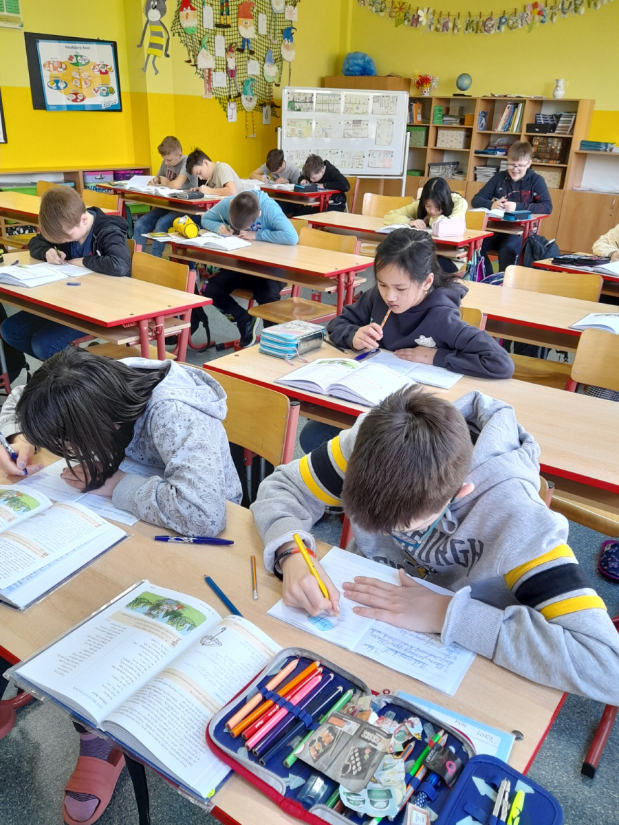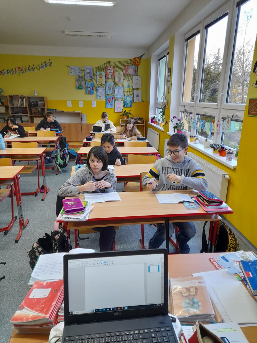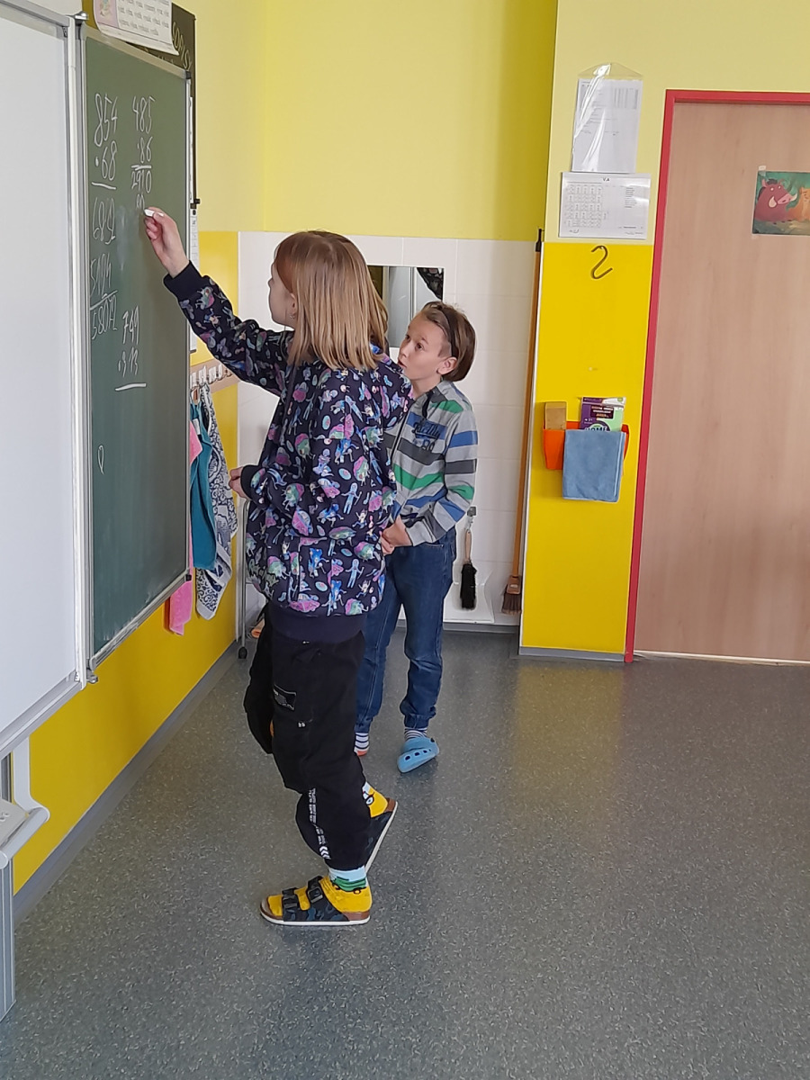 Dnes patří všem žákům 5. A velké poděkování a pochvala, protože mi dovolili oslavit Den učitelů „nicneděláním“. Učili místo mě. Připravili si samostatně hodiny českého jazyka, matematiky a čtení. Češtinu odučily Martinka Dong a Terka Bokšayová, matiku s žáky procvičili Míša Nosál a Vašek Fojtík, čtení si vzaly na starost Lýdie Vitnerová a Anetka Soukupová. Pro kamarády měli připravené opravdu pestré činnosti. Vážně brali vyučování i ostatní žáci. Plnili zadané úkoly, pracovali samostatně, ve dvojicích i ve skupinách, dokonce se hlásili. Podobně proběhly také hodiny vlastivědy, informatiky a hudební výchovy pod vedením Míši Nosála, Veroniky Školoudové, Anetky Soukupvé, Patrika Rohma, Marka Matouška a Víti Hořínka.
