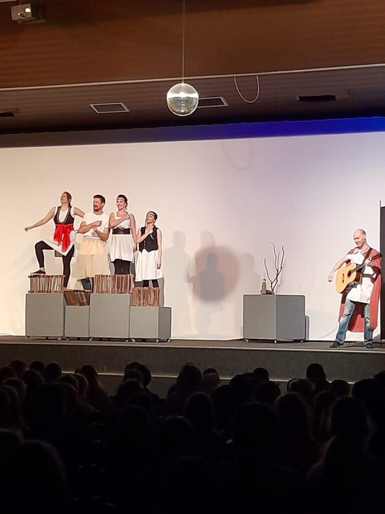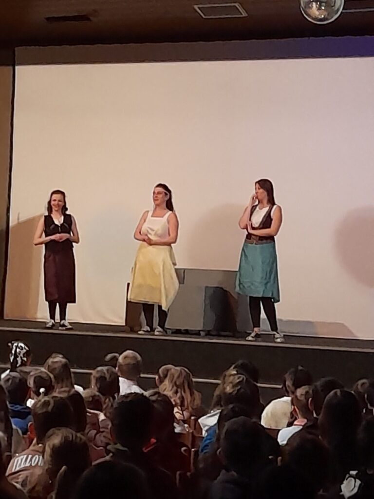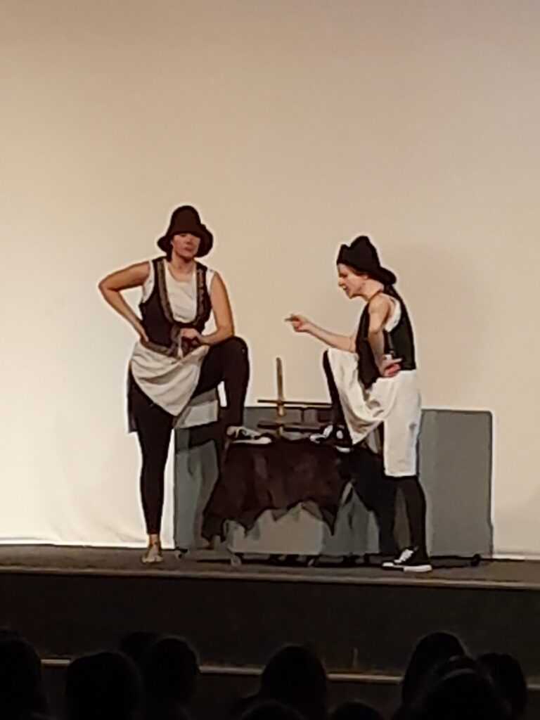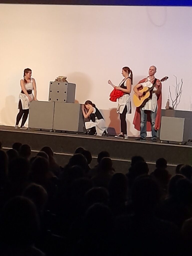 Pověsti pro štěstí bylo nápadité představení, které nenásilnou formou vtáhlo diváky do počítačové hry. Z teenagerů strkajících se před půjčovnou her se najednou staly postavy z českých pověstí. Objevil se tak před námi praotec Čech, vojvoda Lech, sestry Kazi, Teta i Libuše se svými proroctvími. Nechyběl ani Bivoj s kancem ani dívčí válka. Celou pouť časem uzavřel Šemíkův skok s Horymírem na zádech z hradeb Vyšehradu. Nakonec se všichni vrátili do současnosti, s hrůzou zjistili, kolik je hodin a pelášili domů. Představení mělo u žáků velký úspěch.