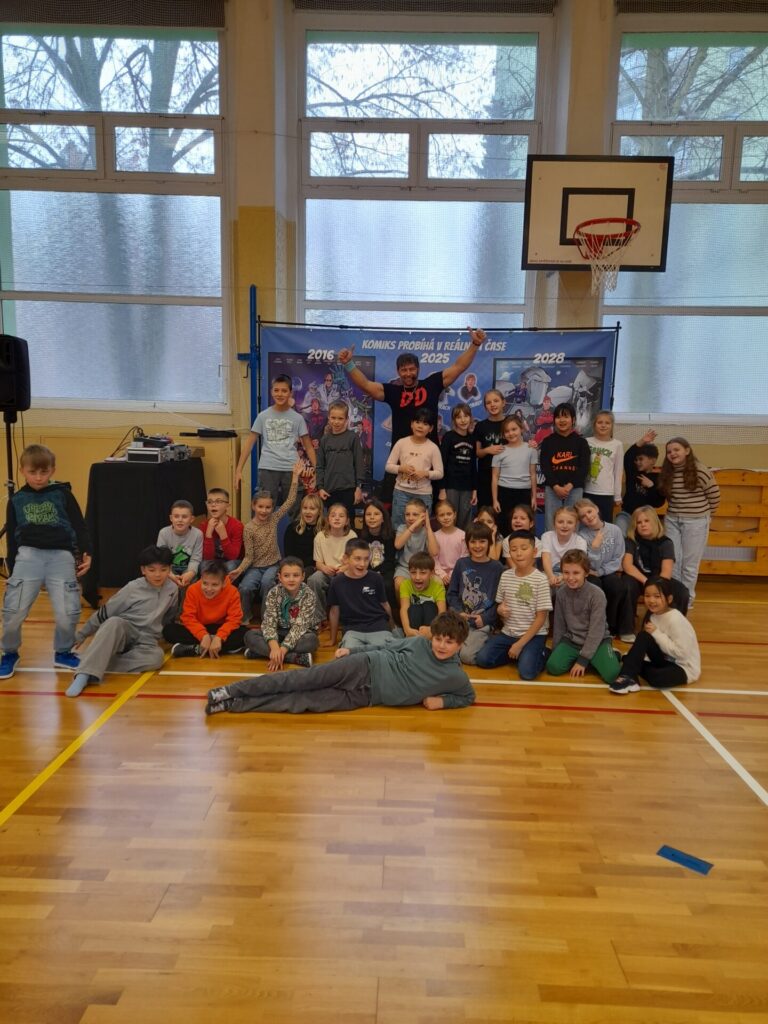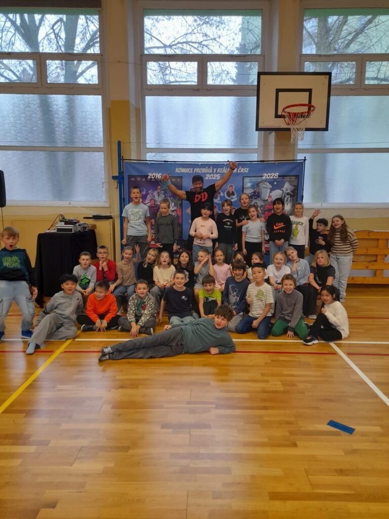 Po roce nás opět navštívil Dr. Dancer. Děti tak měly šanci se pořádně vyřádit v tělocvičně na moderní hudbu. Odcházely šťastné, spokojené a úplně zpocené. 😀