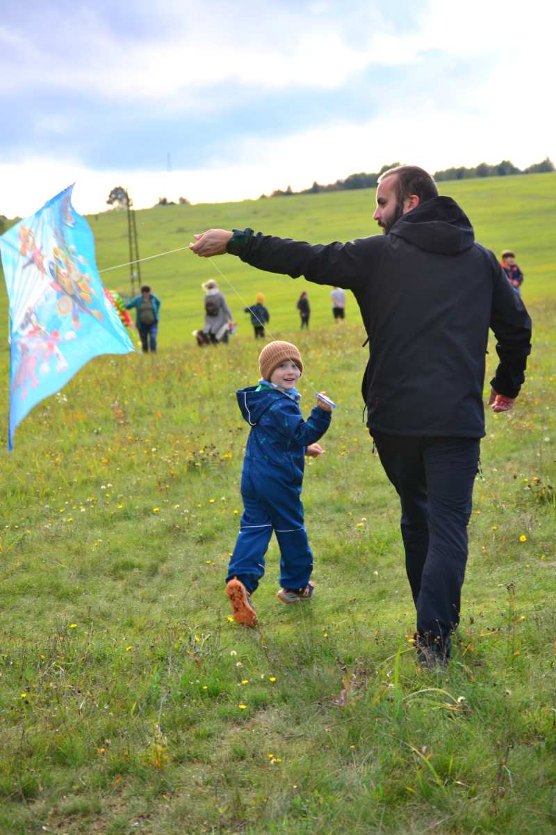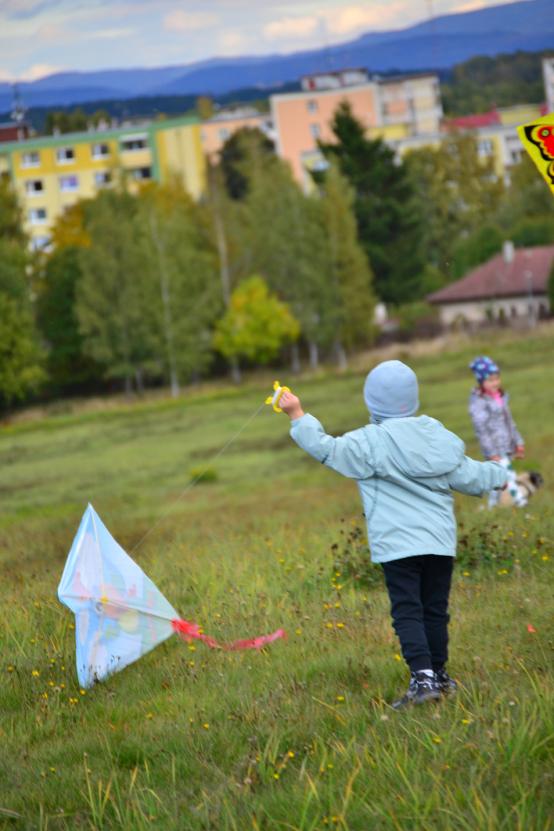 Ve čtvrtek 9.10.2025 se rodiny s dětmi, které měly volné odpoledne, tradičně sešly na Štěříkově louce. Plán byl jasný – užít si krásy podzimu pouštěním draka.