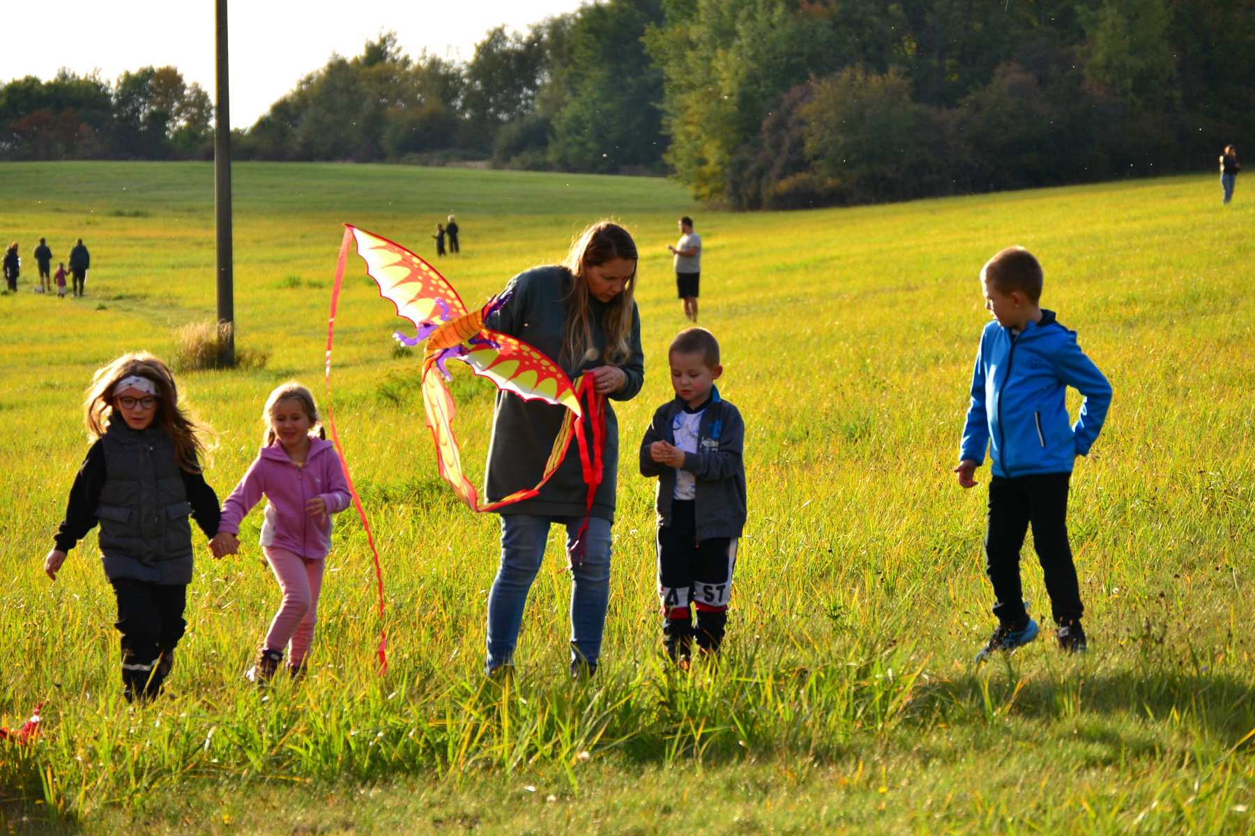 Ve čtvrtek 9.10.2025 se rodiny s dětmi, které měly volné odpoledne, tradičně sešly na Štěříkově louce. Plán byl jasný – užít si krásy podzimu pouštěním draka.