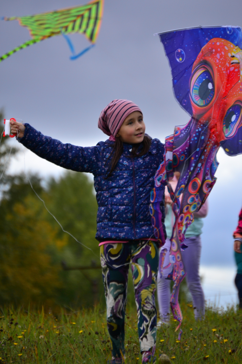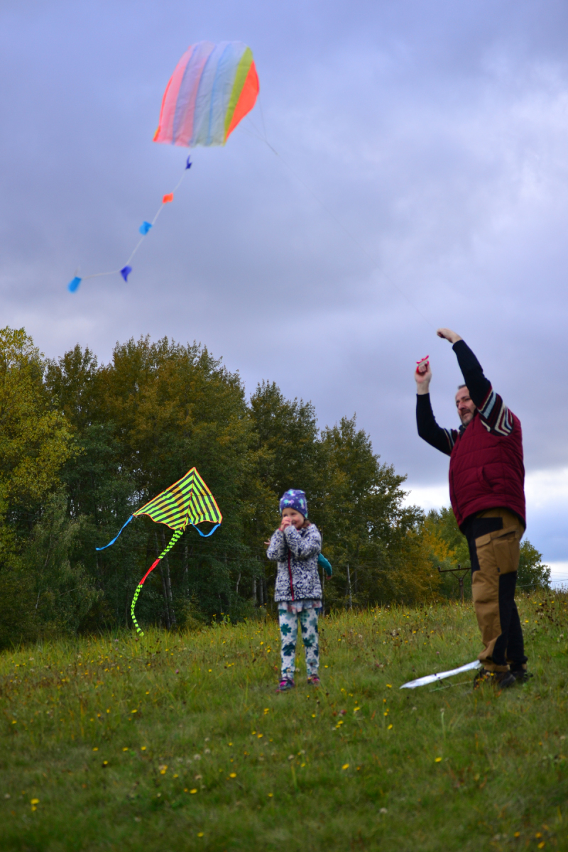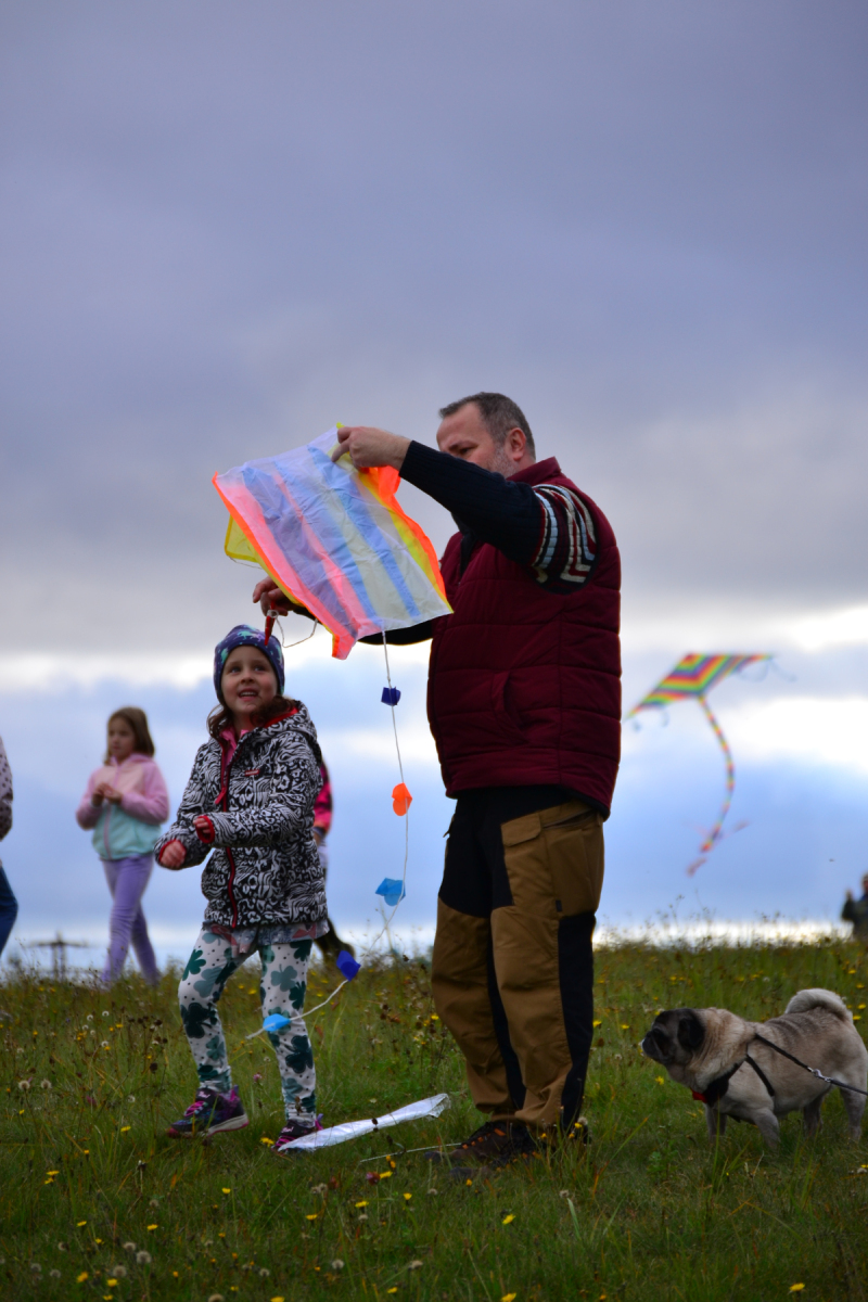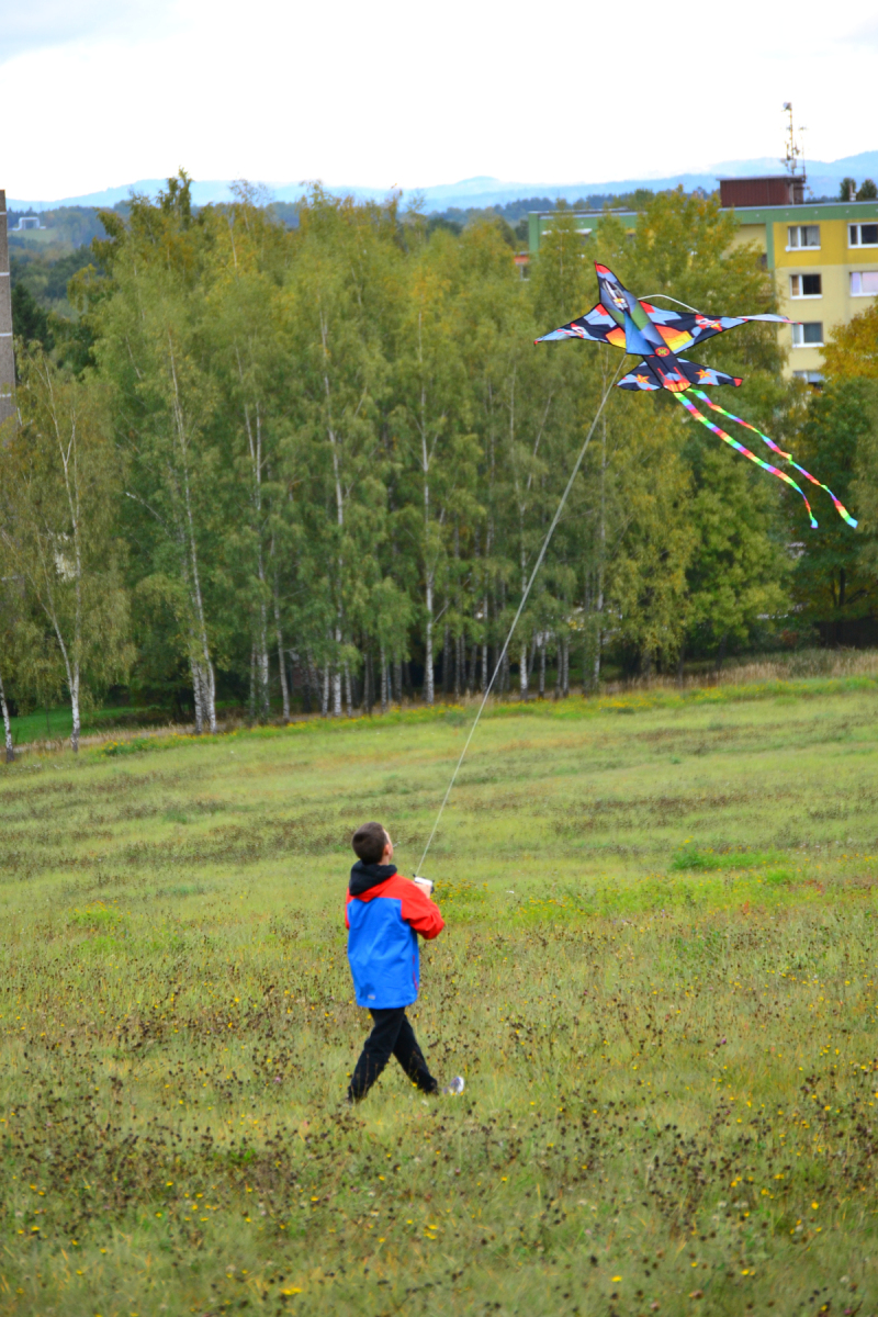 Zpočátku bylo pochmurno a jen sem tam se pohnuly lístečky na stromech. Netrvalo to však dlouho a šedé mraky se rozestoupily. Nakonec nás na tvářích hřálo sluníčko a draci vzlétli do oblak. Byla to krásná podívaná.