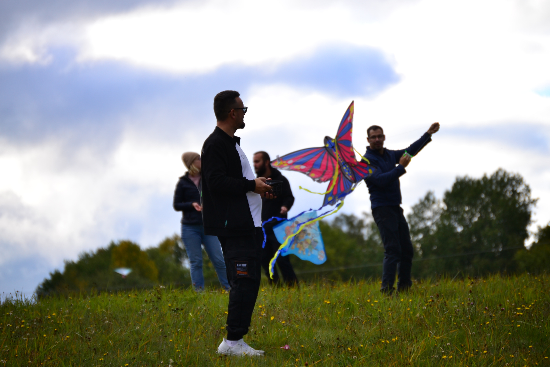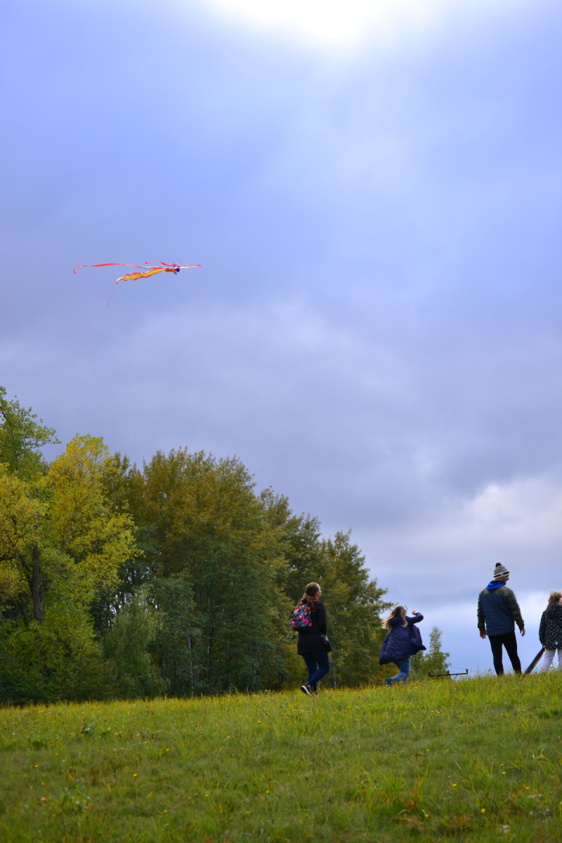 Zpočátku bylo pochmurno a jen sem tam se pohnuly lístečky na stromech. Netrvalo to však dlouho a šedé mraky se rozestoupily. Nakonec nás na tvářích hřálo sluníčko a draci vzlétli do oblak. Byla to krásná podívaná.