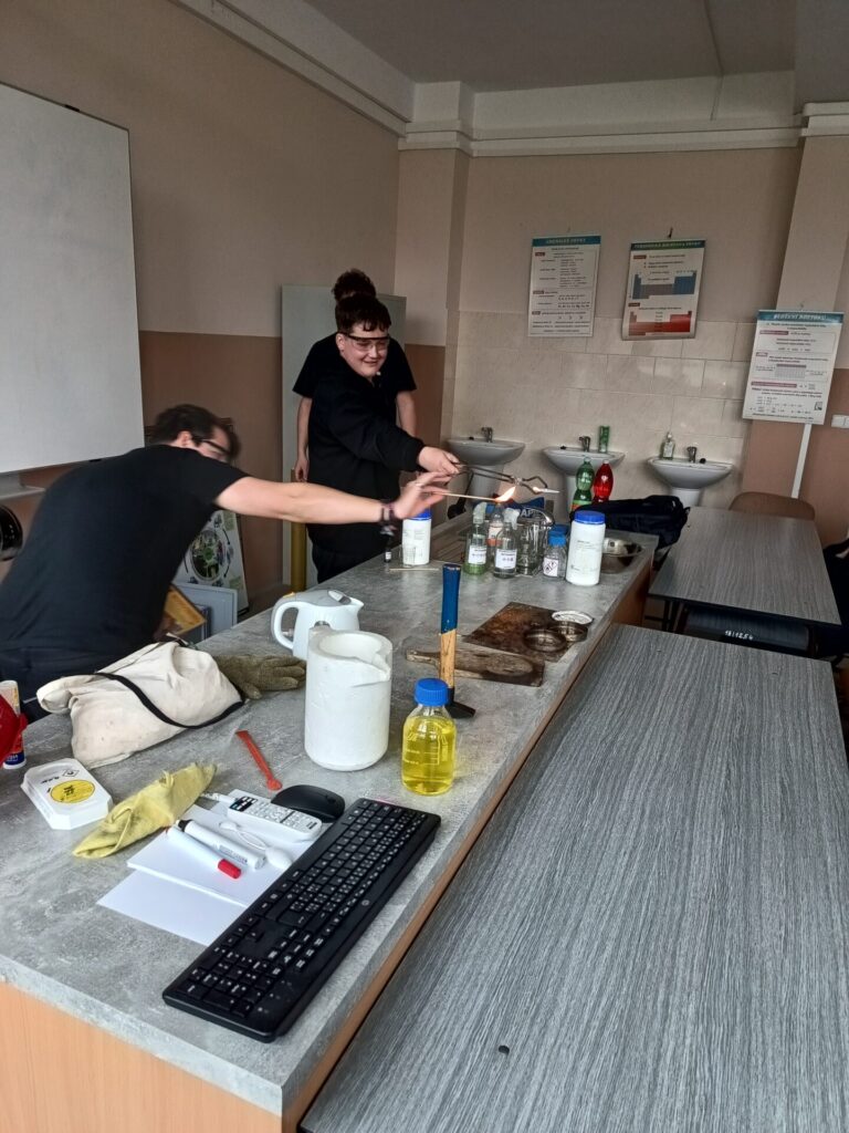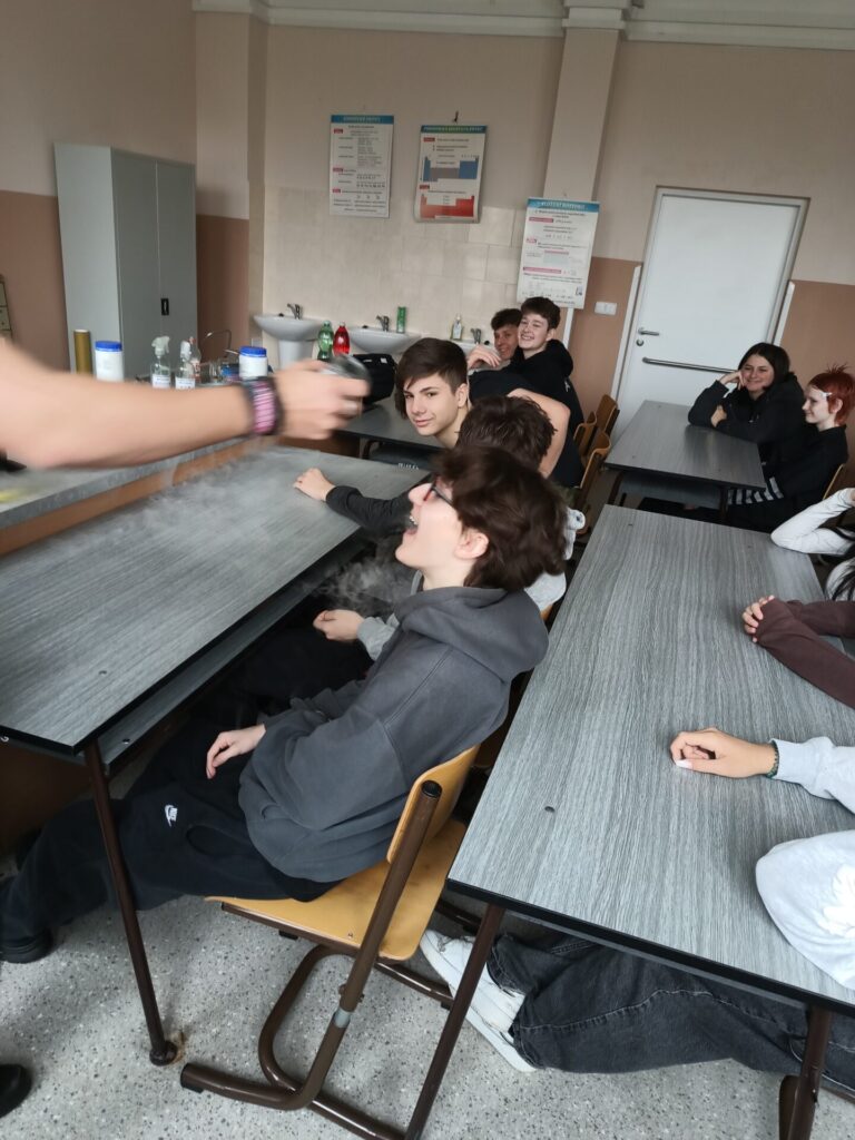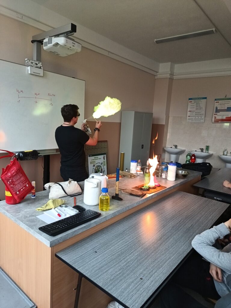 Pro deváté ročníky byla připravena přednáška s názvem „Přeměny energie“. Největší pozornost vzbudil zmenšený model parního stroje, který byl poháněn kapalným dusíkem. Žáci také viděli výrobu vodíku z hydroxidu sodného a další zajímavé experimenty, které jim pomohly lépe pochopit principy chemických reakcí a energetických změn.