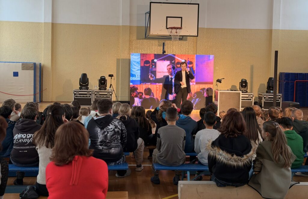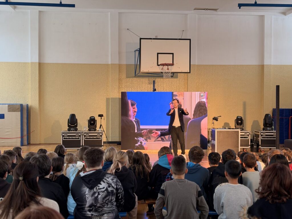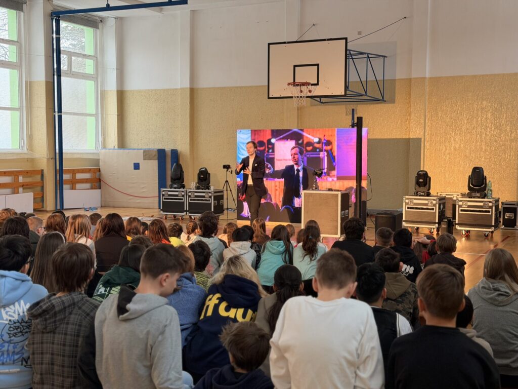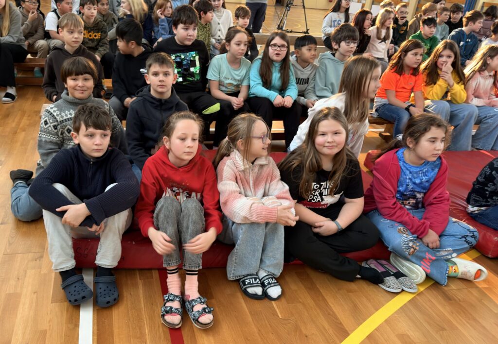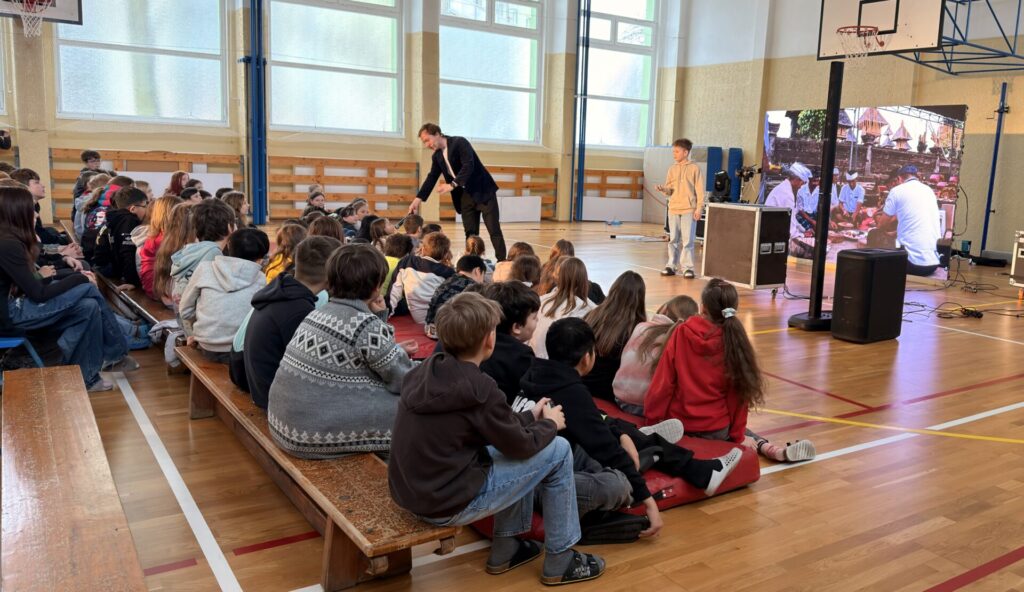Ano, přišel Tomáš Podzimek. Dnes se naše tělocvična proměnila, pro někoho v příjemnější prostředí. Ono se zde necvičilo, ale kouzlilo a cestovalo! Děti mohly být součástí čar, kouzel, triků a k tomu se dozvěděly i něco málo o různých zemích. Podle reakce žáků to bylo celé, tak nějak kouzelně začarované.