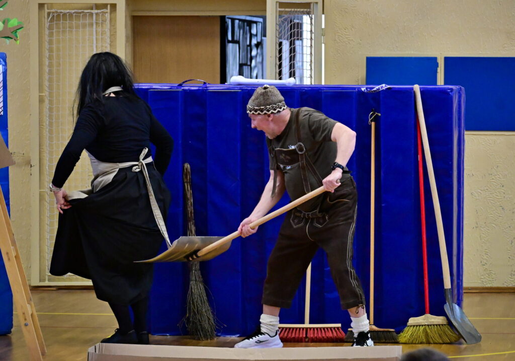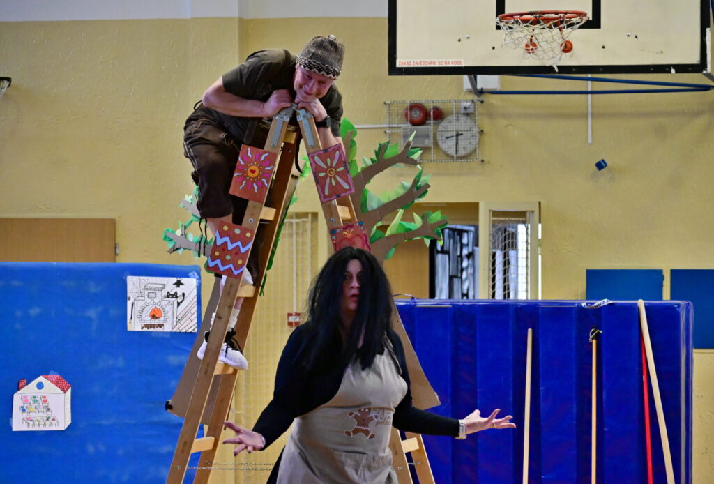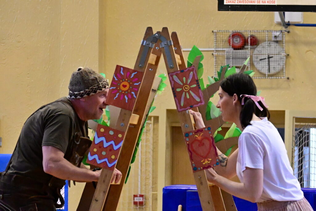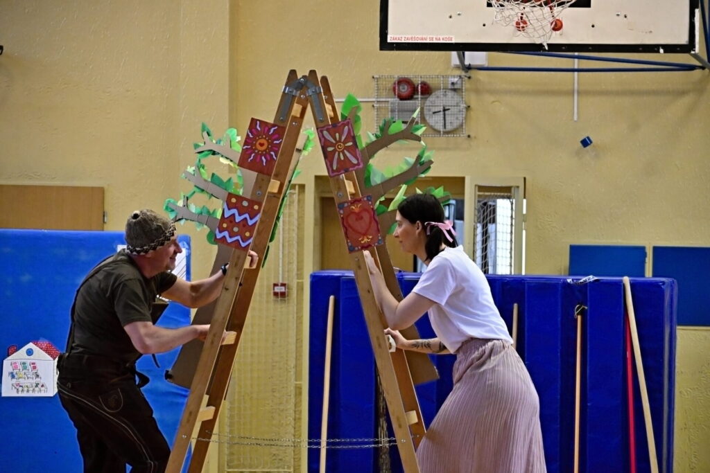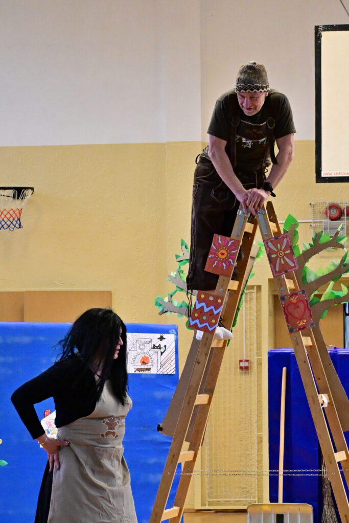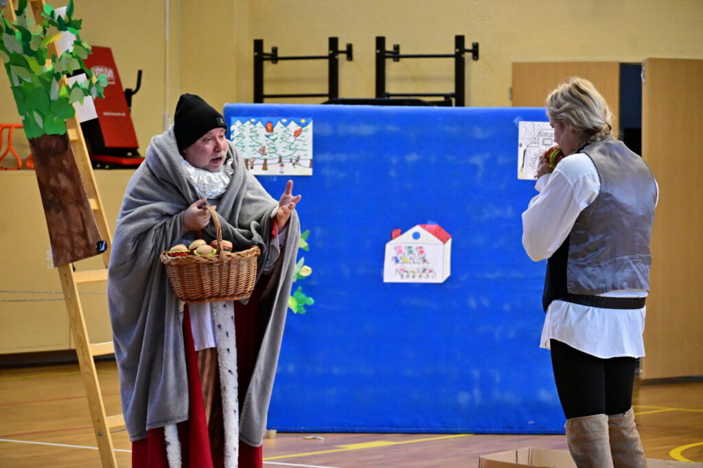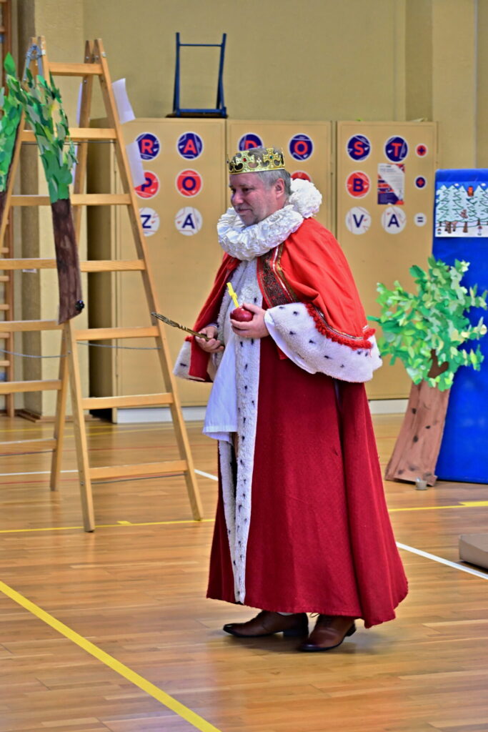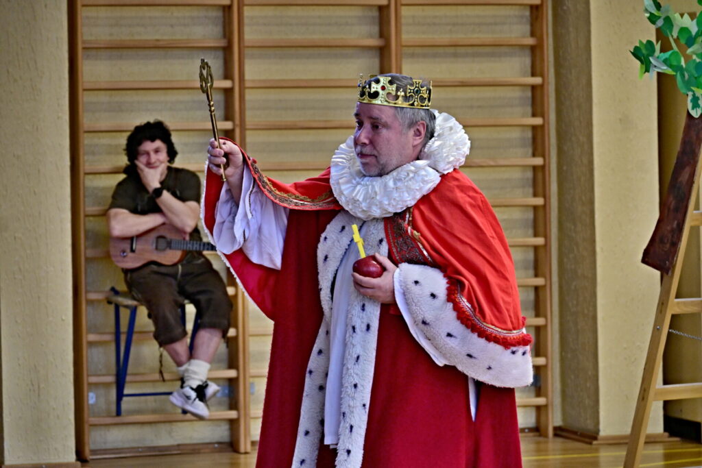Prkna, co znamenají svět, měla tentokráte podobu dřevěných parket naší tělocvičny. Na nich se nejprve odehrála pohádka Sněhurka a poté pohádka O perníkové chaloupce. Obě pohádky z lesního prostředí, na základě lidové předlohy, došly k úpravám pod tvůrčím perem našeho pana učitele Miloše Volka. V rolích se blýsklo hned několik našich učitelů především z druhého stupně. Za zmínění stojí role krále, v níž bezkonkurenčně zazářil pan zástupce Vladimír Šik. Autor upravených pohádek pan učitel Miloš Volek provázel příběhy jakožto poutník se svým ukulele a zároveň se jal role Jeníčka.
