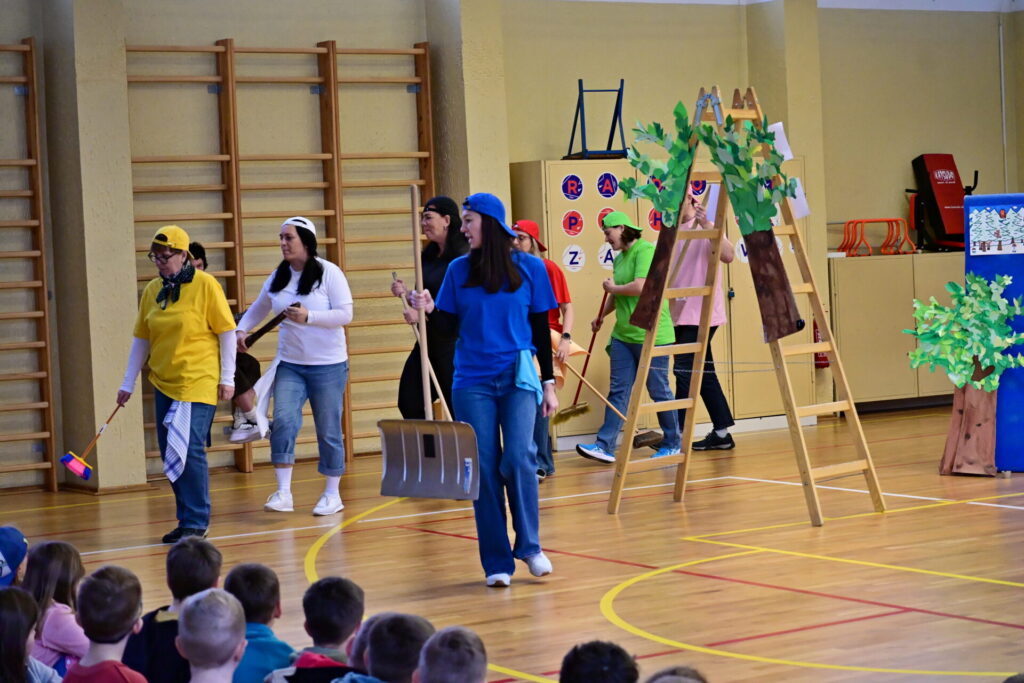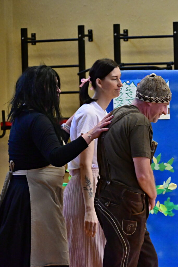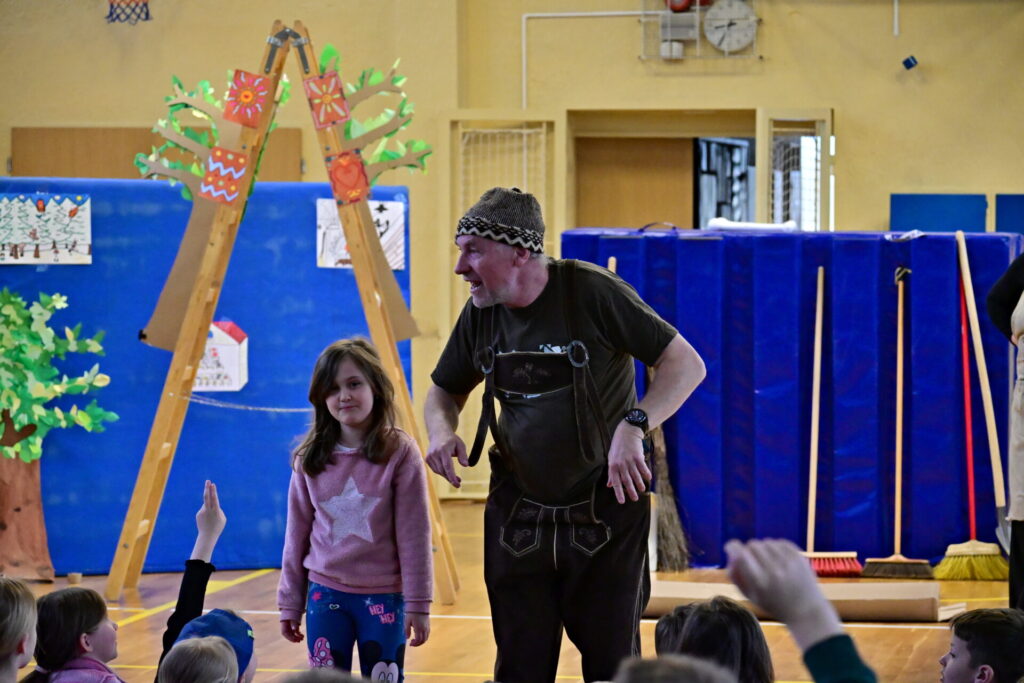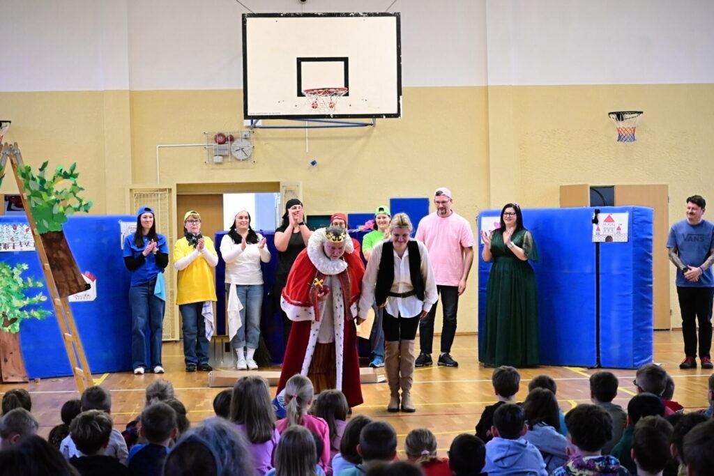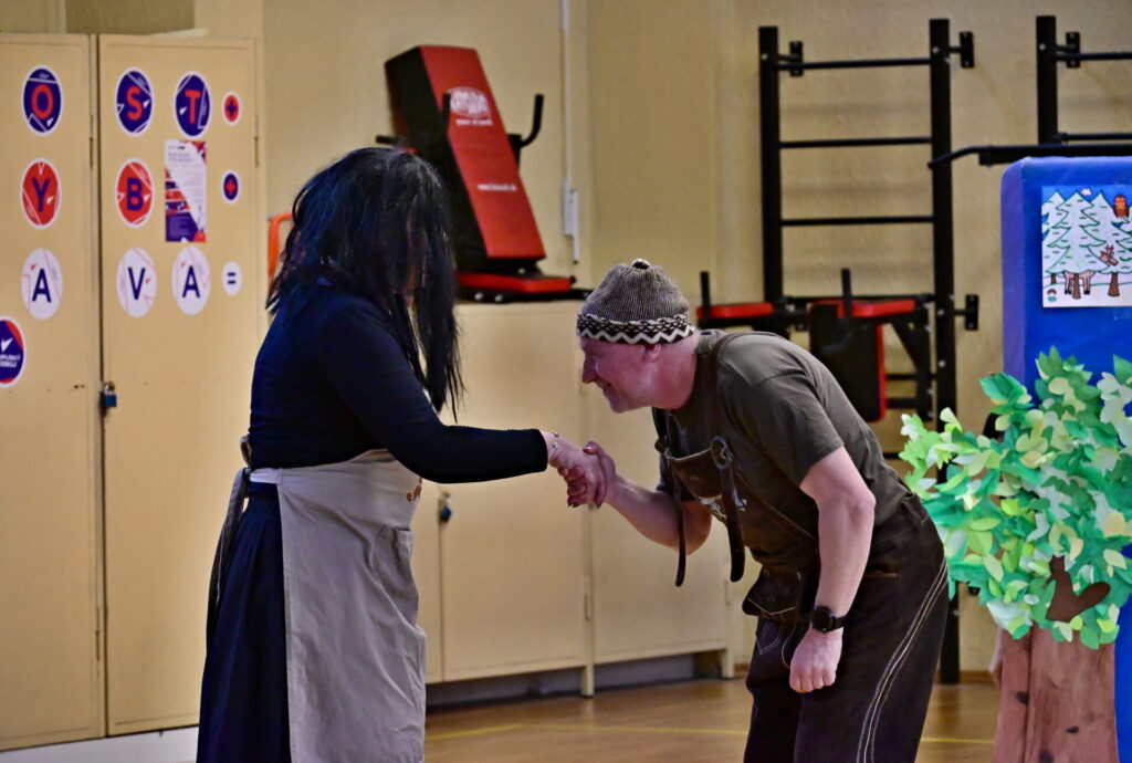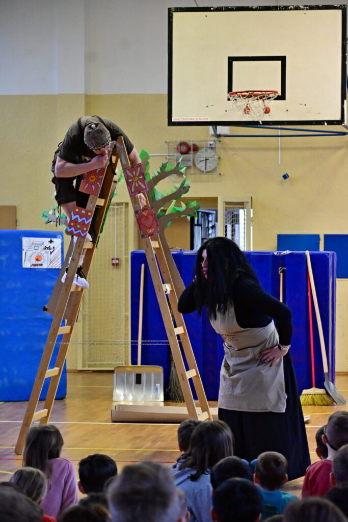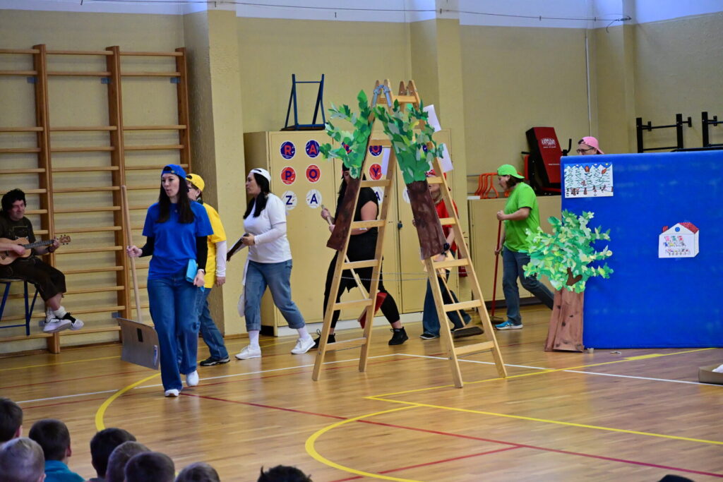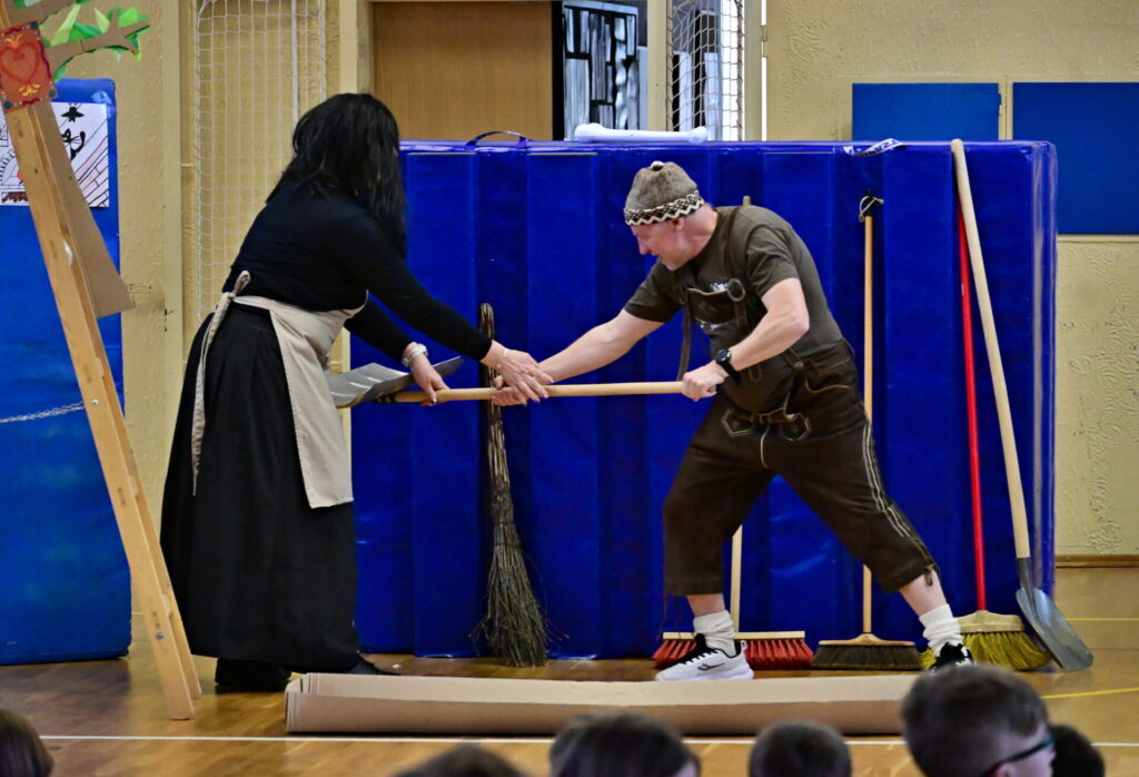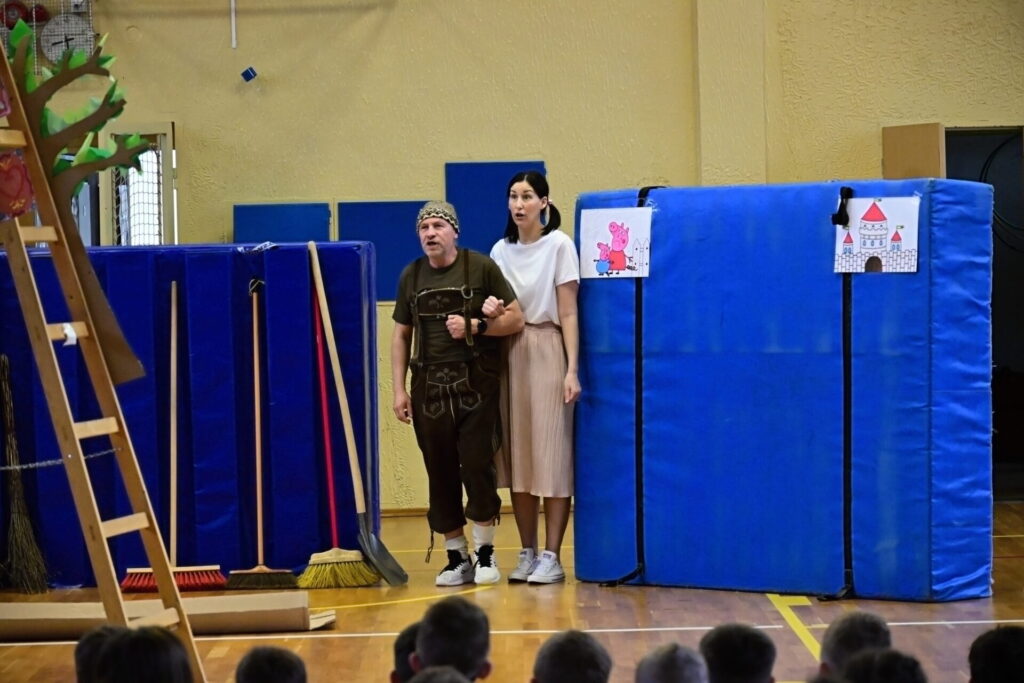 Prkna, co znamenají svět, měla tentokráte podobu dřevěných parket naší tělocvičny. Na nich se nejprve odehrála pohádka Sněhurka a poté pohádka O perníkové chaloupce. Obě pohádky z lesního prostředí, na základě lidové předlohy, došly k úpravám pod tvůrčím perem našeho pana učitele Miloše Volka. V rolích se blýsklo hned několik našich učitelů především z druhého stupně. Za zmínění stojí role krále, v níž bezkonkurenčně zazářil pan zástupce Vladimír Šik. Autor upravených pohádek pan učitel Miloš Volek provázel příběhy jakožto poutník se svým ukulele a zároveň se jal role Jeníčka.