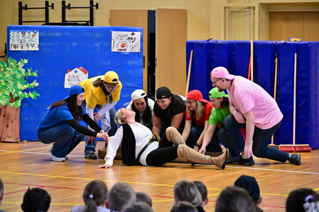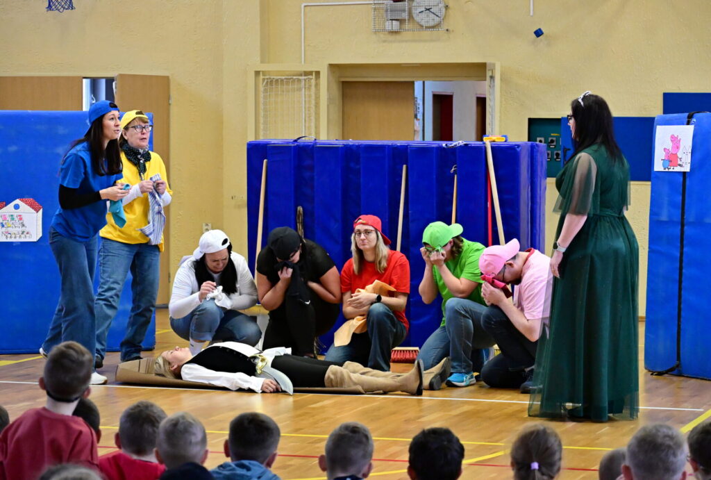 Ku příležitosti připomenutí Dne divadel si někteří naši učitelé jakožto Alternativní divadelní soubor pedagogických pracovníků připravil pro žáky prvního stupně naší školy divadelní vystoupení, v němž ztvárnil dvě známé pohádky. Samotné datum premiéry 1.4. nabízelo pojmout pohádky jinak, nevšedně. Stejně jako celé dopoledne na naší škole, jenž se neslo v tematickém duchu Dne naruby.