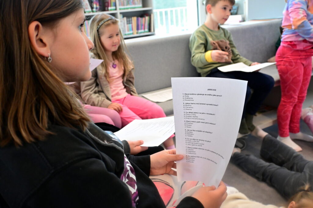 Ve středu 22.4. jsme se vydali do knihovny u nás v Chodově. Pan knihovník Štěpán Petričić si pro školáky připravil příjemnou besedu na téma Jaro. Školáci se hlásili, statečně odpovídali. Četli kvízové otázky a vybírali mezi vtipnými odpověďmi. Velmi se nám beseda líbila, děkujeme.