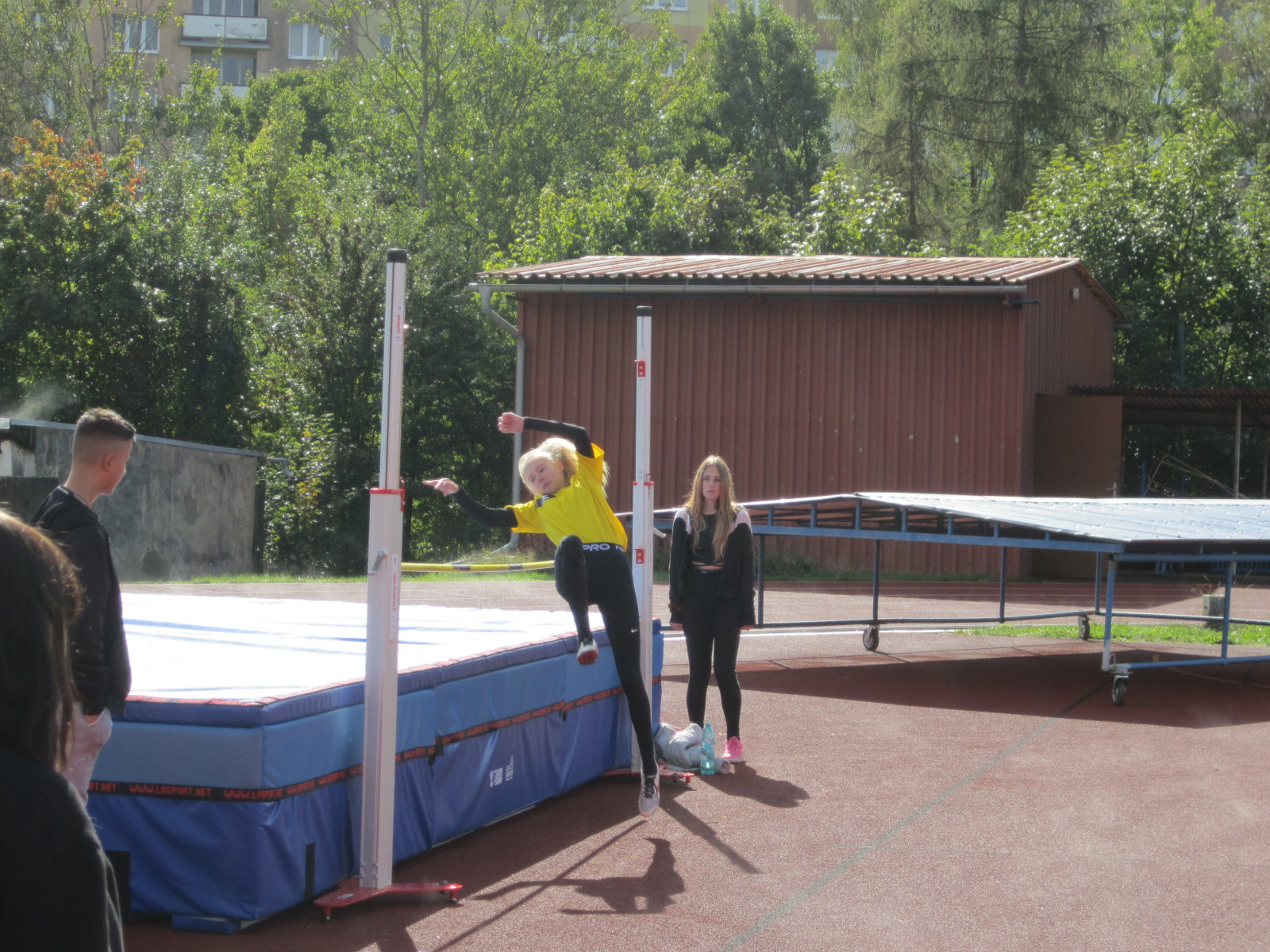 Ve středu 21. září se sešla družstva starších chlapců a dívek. V kategorii dívek, kde nás reprezentovaly Tereza Krejčová, Anna Beňová, Karolína Weberová, Milada Vaňhová a Nikola Homolková, byla veliká konkurence. Celkem 11 družstev soupeřilo ve běhu 60m, skocích, vrhu koulí, hodu míčkem a závěrečném běhu na 800 metrů. Z našich dívek se nejlépe dařilo Tereze Krejčové, která předváděla úžasné výkony ve všech disciplínách. Konkrétně 60m za 8,97, 140 cm do výšky, kterou také vyhrála, druhé místo ve vrhu koulí a úžasný čas na 800m 2:40. V pořadí jednotlivců tak s přehledem zvítězila. Celkově se dívky umístily na krásném 4. místě.