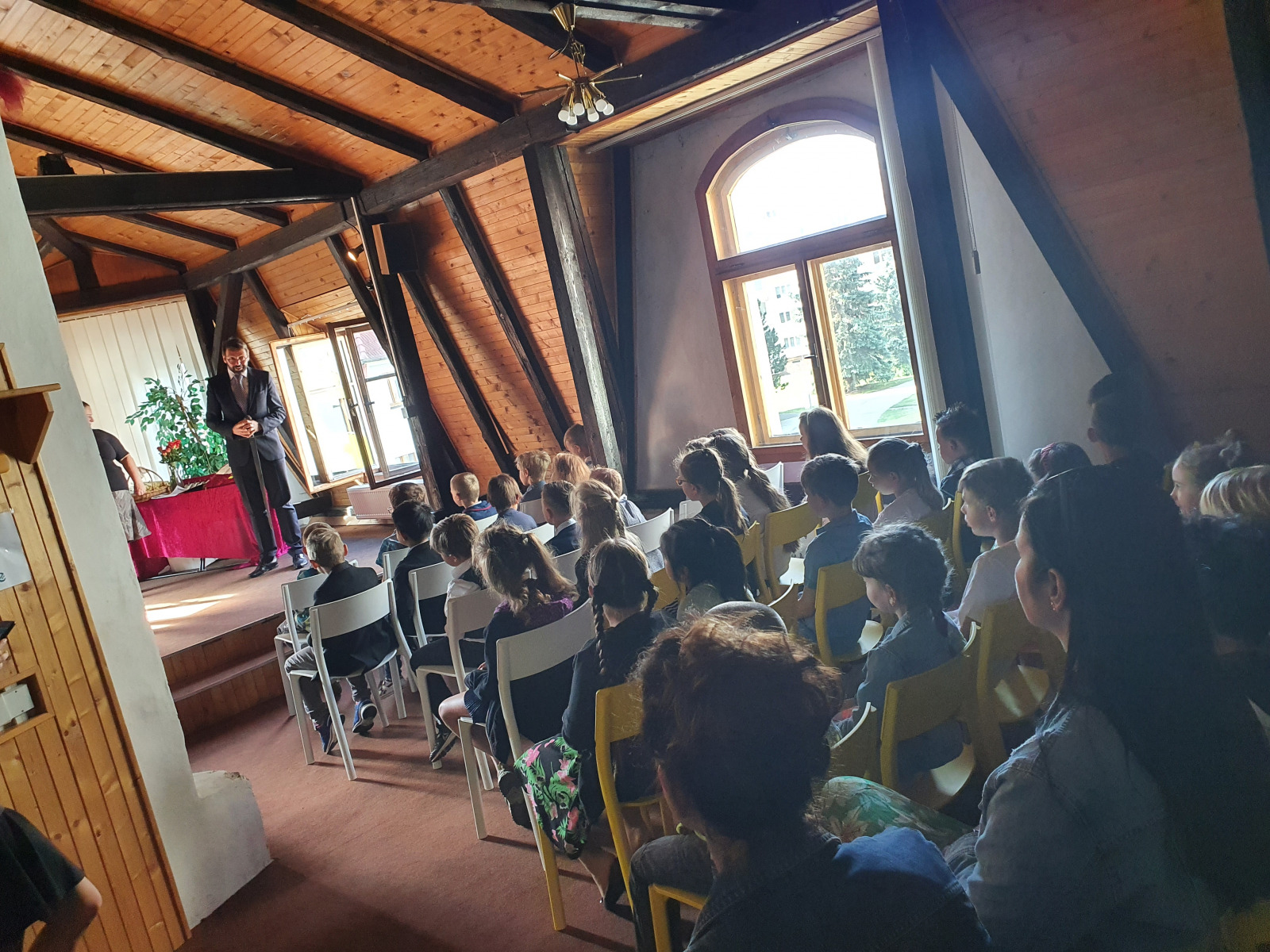 V úterý 14. 6. se v Městské knihovně konala velká sláva. Naši prvňáčci byli pasováni na čtenáře. Tohoto významného slavnostního ceremoniálu se výtečně zhostil pan starosta Patrik Pizinger. Před samotným pasováním všechny pobavilo milé vystoupení dua Dubnička a Lahoda. Pánové zahráli a zazpívali pár písní z vlastní tvorby, které se dětem moc líbily. A pak konečně nastala dlouho očekávaná chvíle. Žáci společně složili slib, že budou dobrými čtenáři a pak jednotlivě chodili k panu starostovi, který je obrovským mečem pasoval na čtenáře. Každý žák si odnesl na památku slib, knížku Dubánci, pár upomínkových předmětů a kartičku čtenáře, s níž mohou děti chodit do knihovny půjčovat si knihy. Po skončení pasování jsme se přesunuli do dětského oddělení, kde si žáci vybrali svou první knihu k vypůjčení.