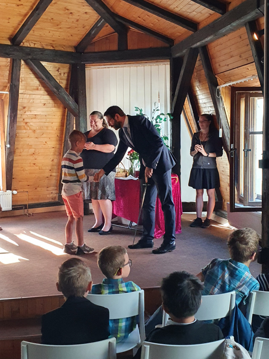 V úterý 14. 6. se v Městské knihovně konala velká sláva. Naši prvňáčci byli pasováni na čtenáře. Tohoto významného slavnostního ceremoniálu se výtečně zhostil pan starosta Patrik Pizinger. Před samotným pasováním všechny pobavilo milé vystoupení dua Dubnička a Lahoda. Pánové zahráli a zazpívali pár písní z vlastní tvorby, které se dětem moc líbily. A pak konečně nastala dlouho očekávaná chvíle. Žáci společně složili slib, že budou dobrými čtenáři a pak jednotlivě chodili k panu starostovi, který je obrovským mečem pasoval na čtenáře. Každý žák si odnesl na památku slib, knížku Dubánci, pár upomínkových předmětů a kartičku čtenáře, s níž mohou děti chodit do knihovny půjčovat si knihy. Po skončení pasování jsme se přesunuli do dětského oddělení, kde si žáci vybrali svou první knihu k vypůjčení.