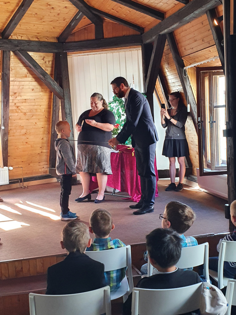 V úterý 14. 6. se v Městské knihovně konala velká sláva. Naši prvňáčci byli pasováni na čtenáře. Tohoto významného slavnostního ceremoniálu se výtečně zhostil pan starosta Patrik Pizinger. Před samotným pasováním všechny pobavilo milé vystoupení dua Dubnička a Lahoda. Pánové zahráli a zazpívali pár písní z vlastní tvorby, které se dětem moc líbily. A pak konečně nastala dlouho očekávaná chvíle. Žáci společně složili slib, že budou dobrými čtenáři a pak jednotlivě chodili k panu starostovi, který je obrovským mečem pasoval na čtenáře. Každý žák si odnesl na památku slib, knížku Dubánci, pár upomínkových předmětů a kartičku čtenáře, s níž mohou děti chodit do knihovny půjčovat si knihy. Po skončení pasování jsme se přesunuli do dětského oddělení, kde si žáci vybrali svou první knihu k vypůjčení.