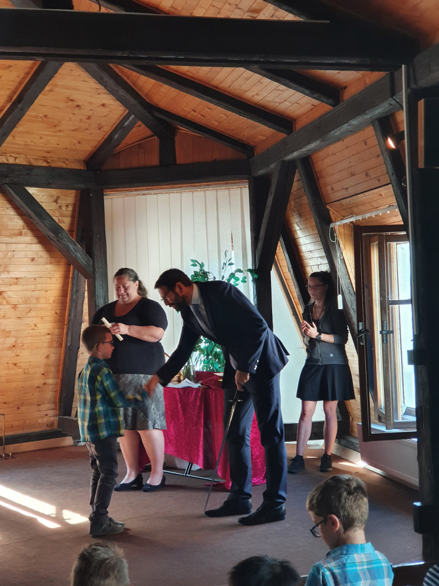 V úterý 14. 6. se v Městské knihovně konala velká sláva. Naši prvňáčci byli pasováni na čtenáře. Tohoto významného slavnostního ceremoniálu se výtečně zhostil pan starosta Patrik Pizinger. Před samotným pasováním všechny pobavilo milé vystoupení dua Dubnička a Lahoda. Pánové zahráli a zazpívali pár písní z vlastní tvorby, které se dětem moc líbily. A pak konečně nastala dlouho očekávaná chvíle. Žáci společně složili slib, že budou dobrými čtenáři a pak jednotlivě chodili k panu starostovi, který je obrovským mečem pasoval na čtenáře. Každý žák si odnesl na památku slib, knížku Dubánci, pár upomínkových předmětů a kartičku čtenáře, s níž mohou děti chodit do knihovny půjčovat si knihy. Po skončení pasování jsme se přesunuli do dětského oddělení, kde si žáci vybrali svou první knihu k vypůjčení.