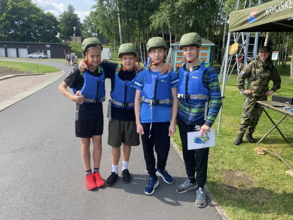 S osmáky jsme dnes vyrazili na Rolavu na bezpečnostně brannou soutěž. Soutěžili jsme v mnoha netradičních disciplínách a užili si spoustu adrenalinu. Pravda, tak úplně jsme nevyhráli. Ale třeba s takovým raftem předvedli kluci takové akrobatické vystoupení, na jaké naše armáda jen tak nezapomene. Alespoň víme, co do příštího roku vyladit. Klukům děkuji za elán a nadšení.