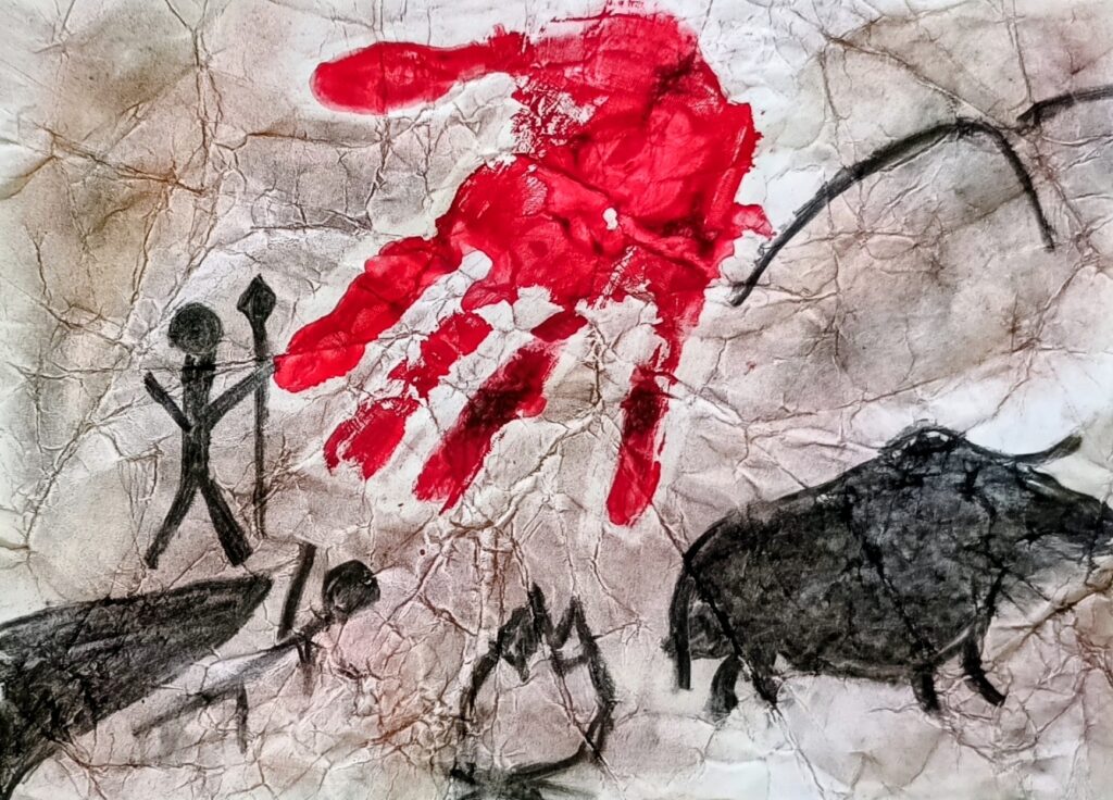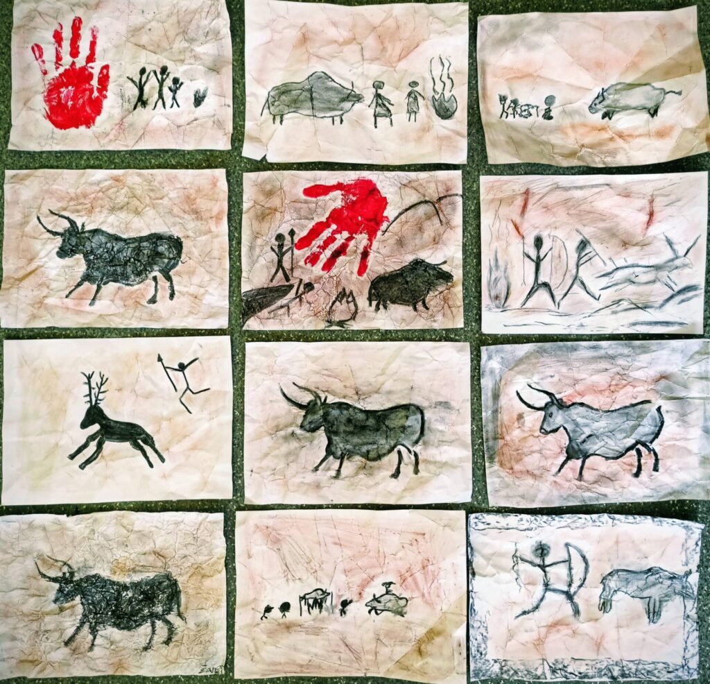 V pátek dne 21.11. jsme se v hodině výtvarné výchovy společně přenesli do pravěku. Povídali jsme si o tom, jak lidé před tisíci lety zanechávali své stopy na stěnách jeskyní, a krátce jsme se seznámili i se slavnou španělskou jeskyní Altamira, kde byly objeveny jedny z nejkrásnějších pravěkých maleb na světě.