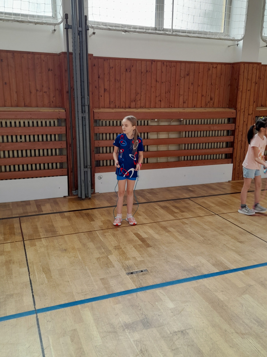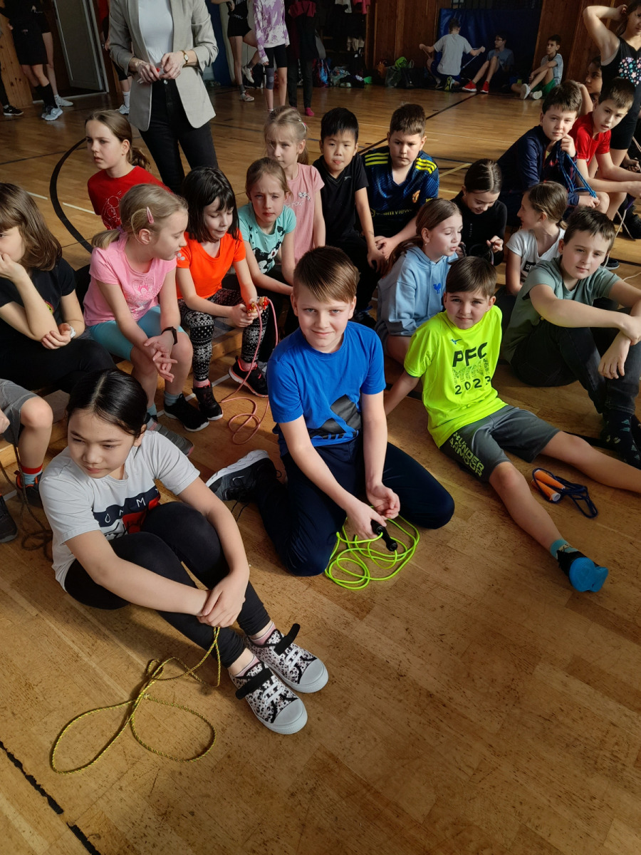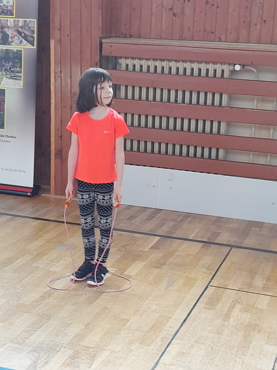 Ve čtvrtek 23. 2. pokračovalo klání chodovských škol. Tentokrát se jednalo o skákání přes švihadlo – počet přeskoků snožmo během 30 sekund. Všichni soutěžící chtěli vyhrát. Výkony většiny z nich byly vyrovnané, ale na stupně vítězů se dostali jen ti nejrychlejší. Pro naši školu získaly stříbrné medaile Anežka Hrušková (1. ročník) a Viktorie Baraňski (4. ročník). Celkově jsme obsadili 4. místo.