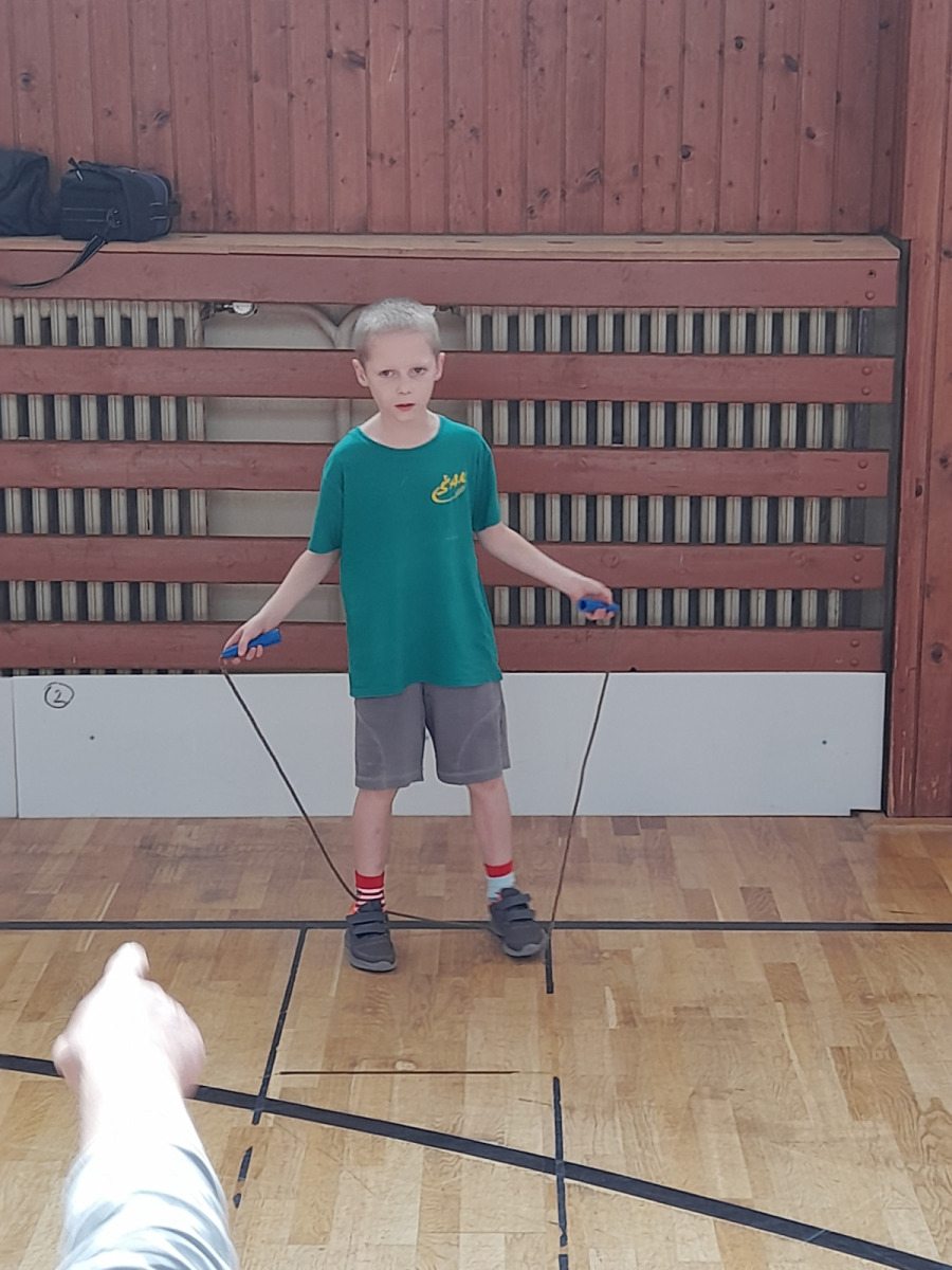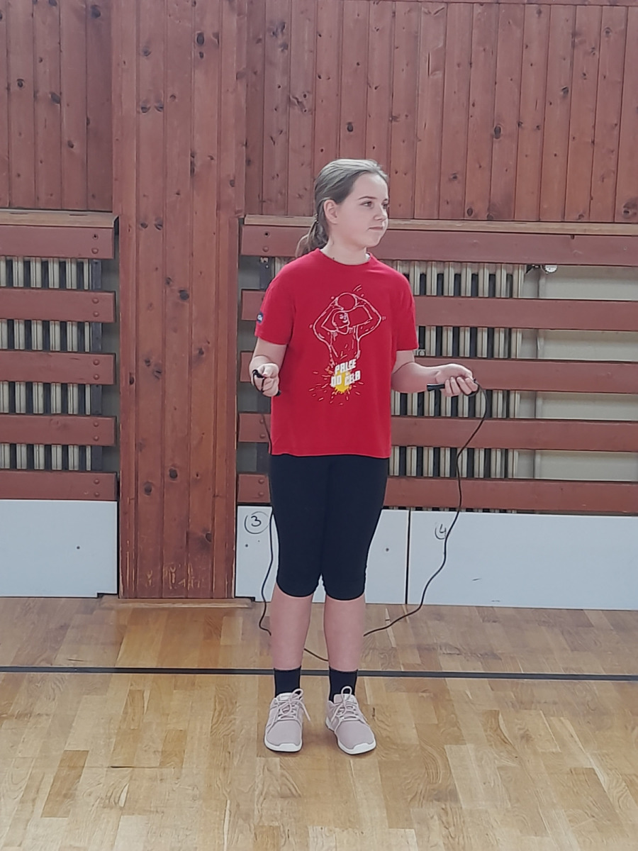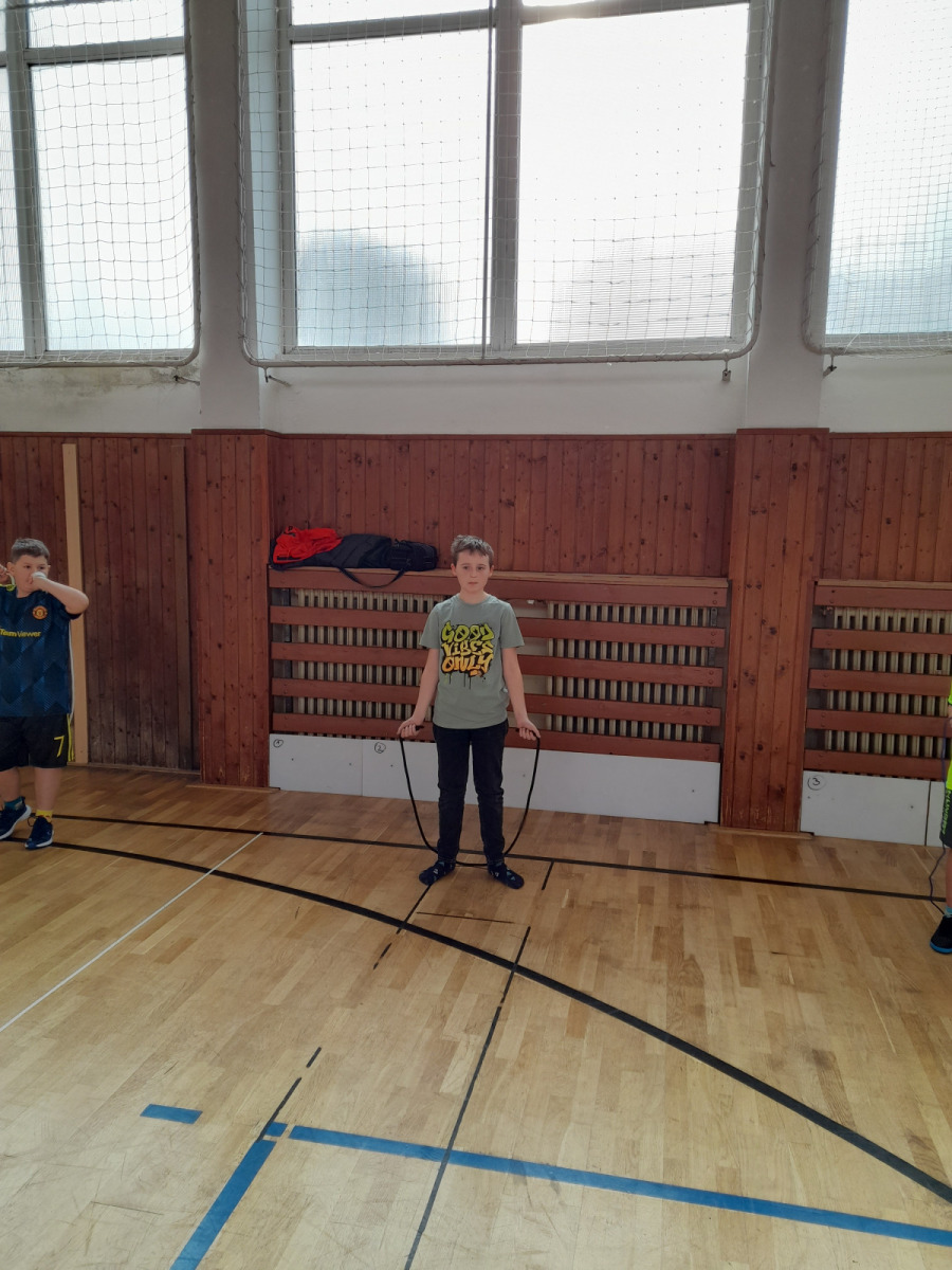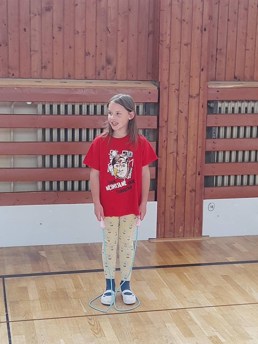 Ve čtvrtek 23. 2. pokračovalo klání chodovských škol. Tentokrát se jednalo o skákání přes švihadlo – počet přeskoků snožmo během 30 sekund. Všichni soutěžící chtěli vyhrát. Výkony většiny z nich byly vyrovnané, ale na stupně vítězů se dostali jen ti nejrychlejší. Pro naši školu získaly stříbrné medaile Anežka Hrušková (1. ročník) a Viktorie Baraňski (4. ročník). Celkově jsme obsadili 4. místo.