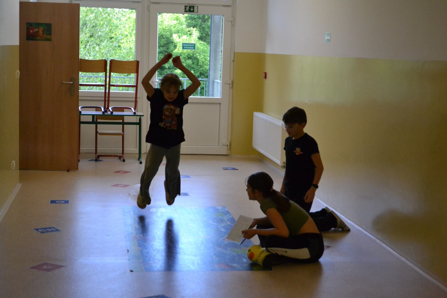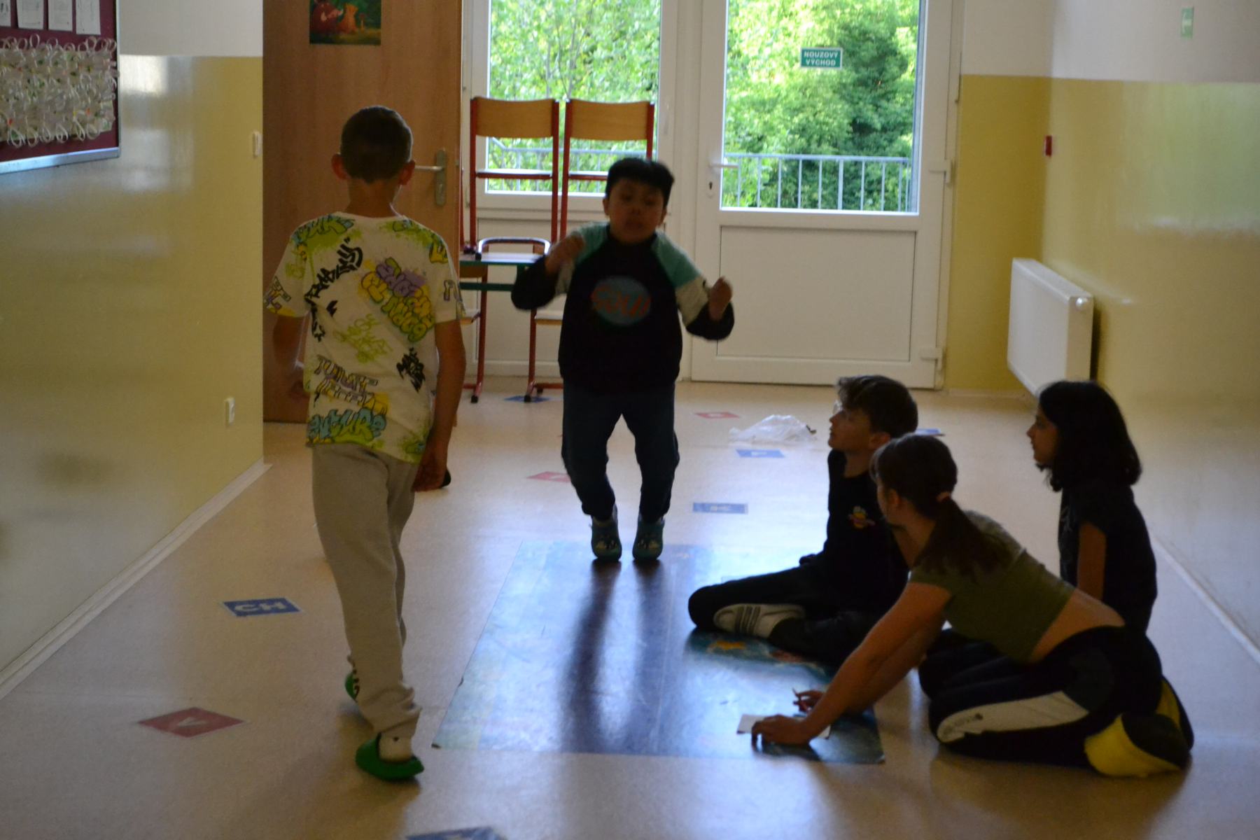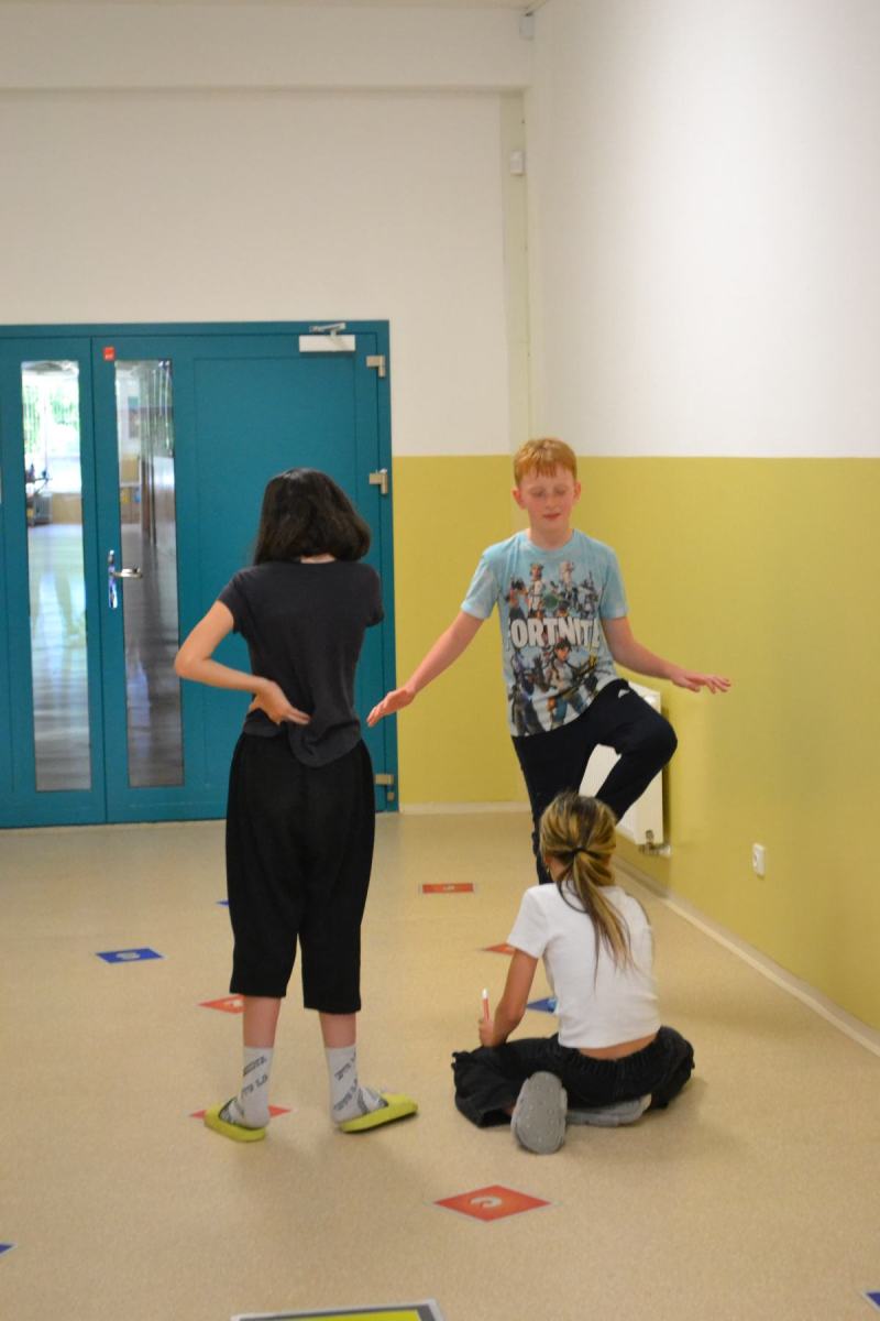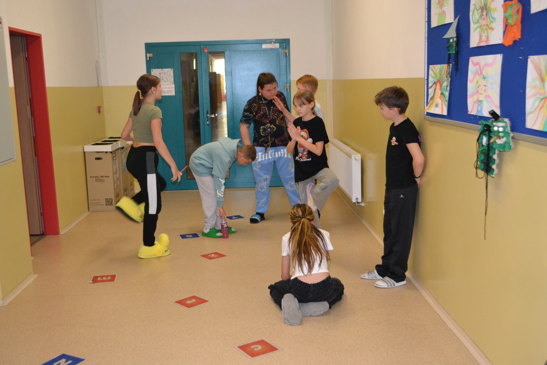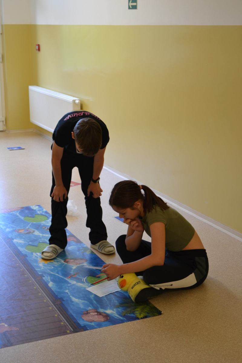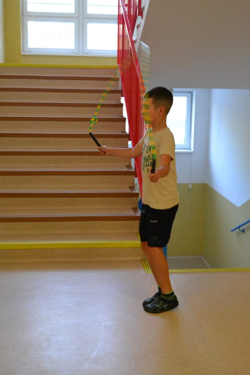 Školáci si pro sebe navzájem připravili soutěžení – skok z místa, skoky přes švihadlo, postoj čápa.
