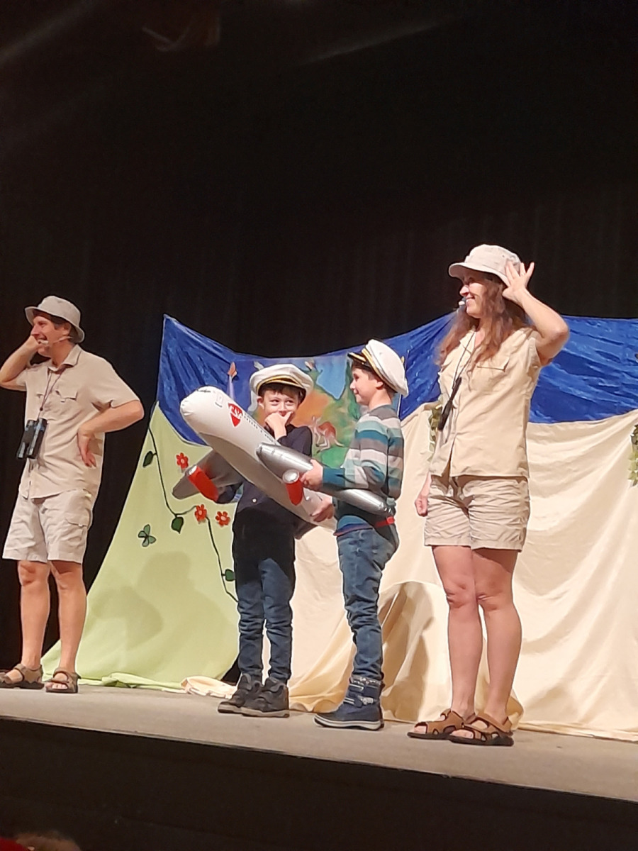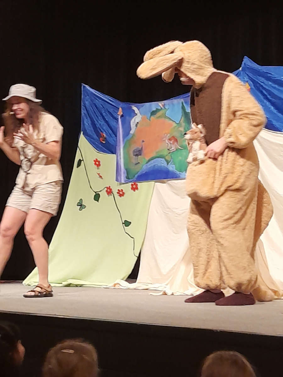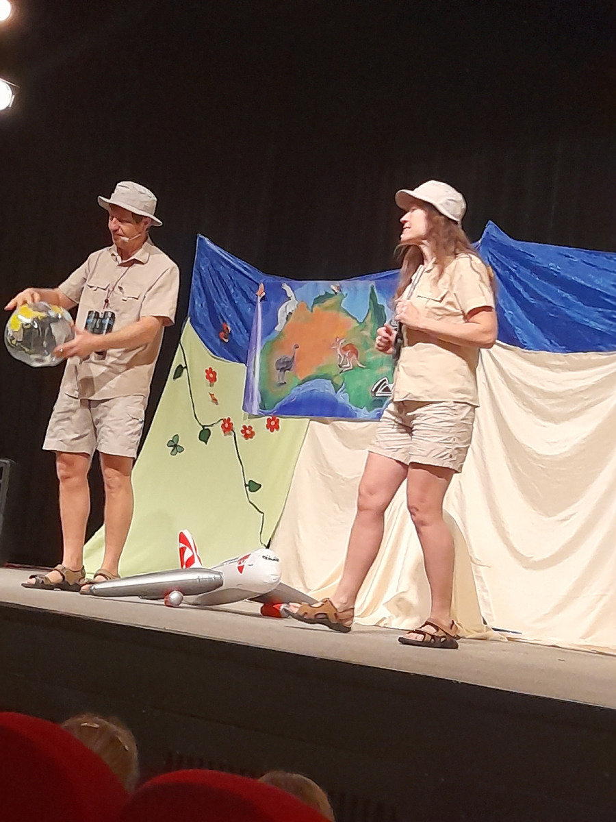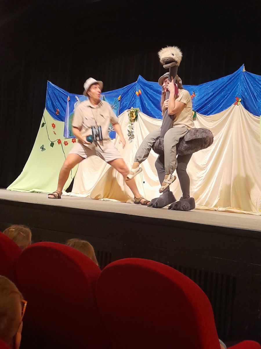 Průzkumníci v Austrálii je divadelní představení, které nás dnes všechny pobavilo. Letadlem jsme se dostali až do daleké Austrálie. Při putování jsme poznali medvídka koalu, který se živí listy eukalyptu a pak 20 hodin prospí. Zazpíval nám papoušek kakadu. Pštros emu zase tvrdil, že nestrká hlavu do písku. Přitom ji ta měl. Také jsme si zazávodili s klokanem ve skákání. A bylo tam strašně moc králíků.