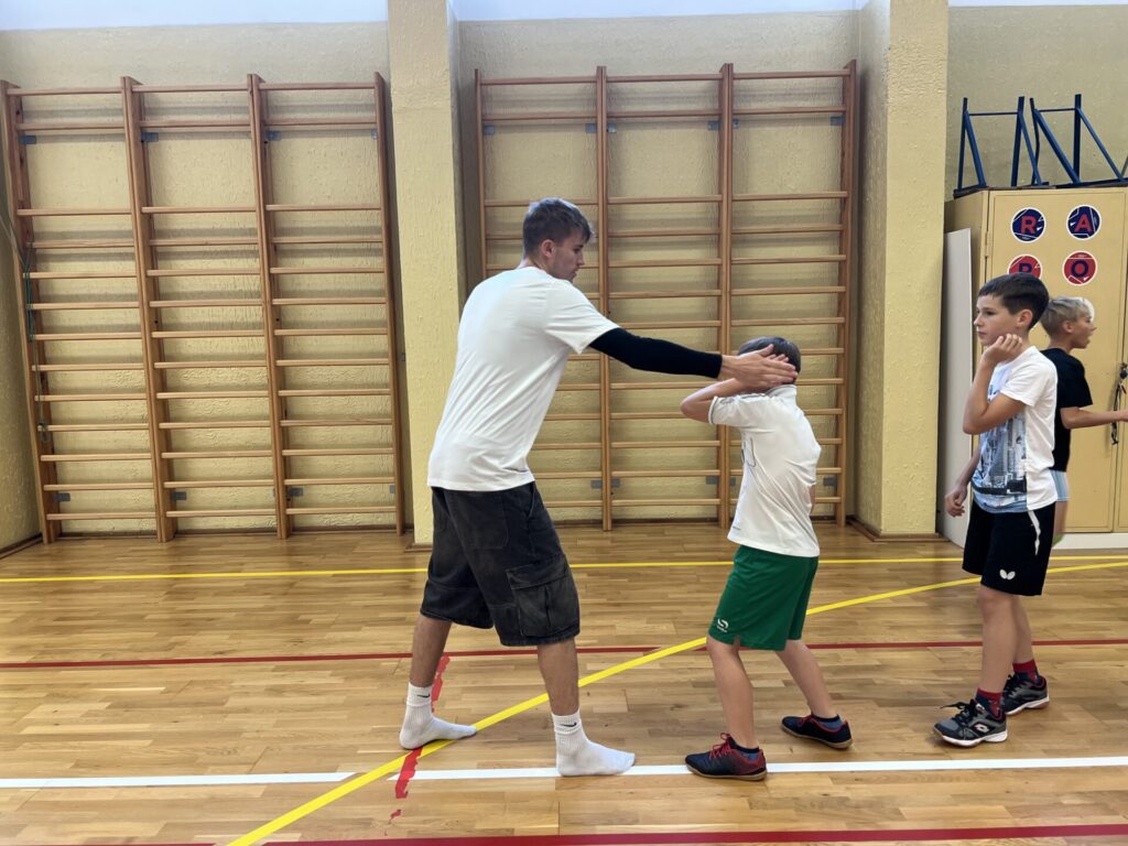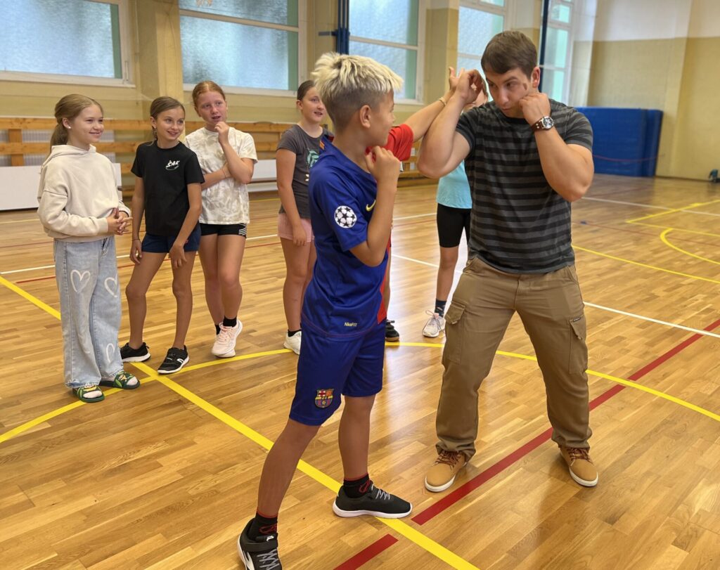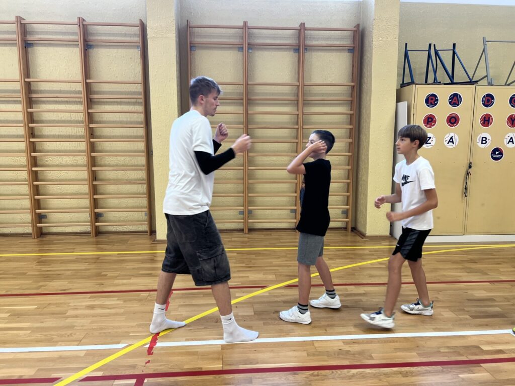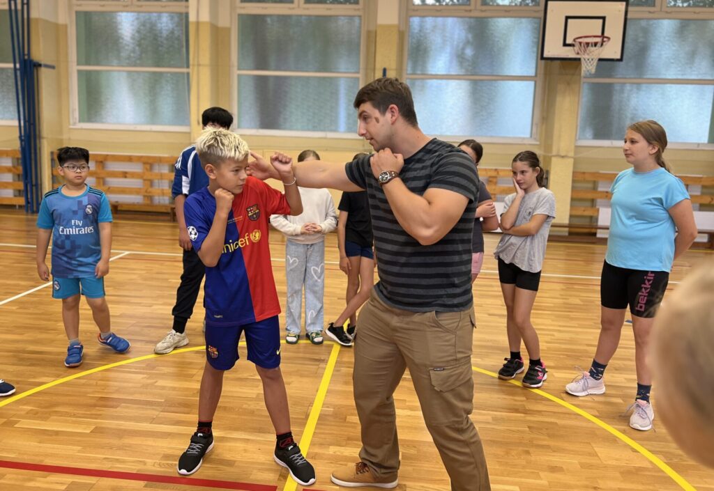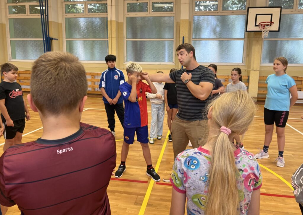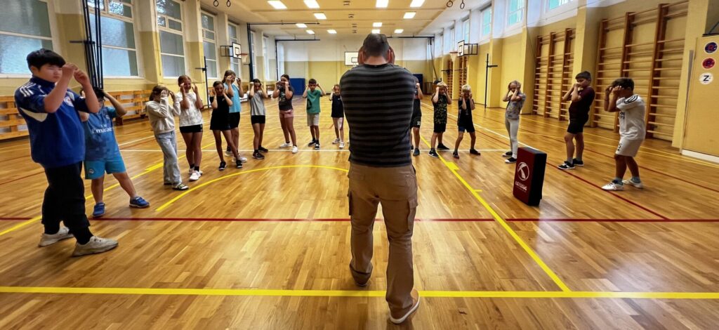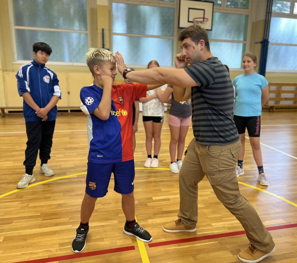 Ve školním roce 2025 / 26 nejen žáci osmého ale i 5. ročníku dvakrát do měsíce absolvují během hodin tělesné výchovy kurz sebeobrany pod vedením odborných lektorů z řad profesionálních hasičů nebo policistů. Zatím máme za sebou první úvodní lekci, která byla spíše seznamovací a teoretická, ale i tak už padla facka na sále 🙂 tedy v tělocvičně.