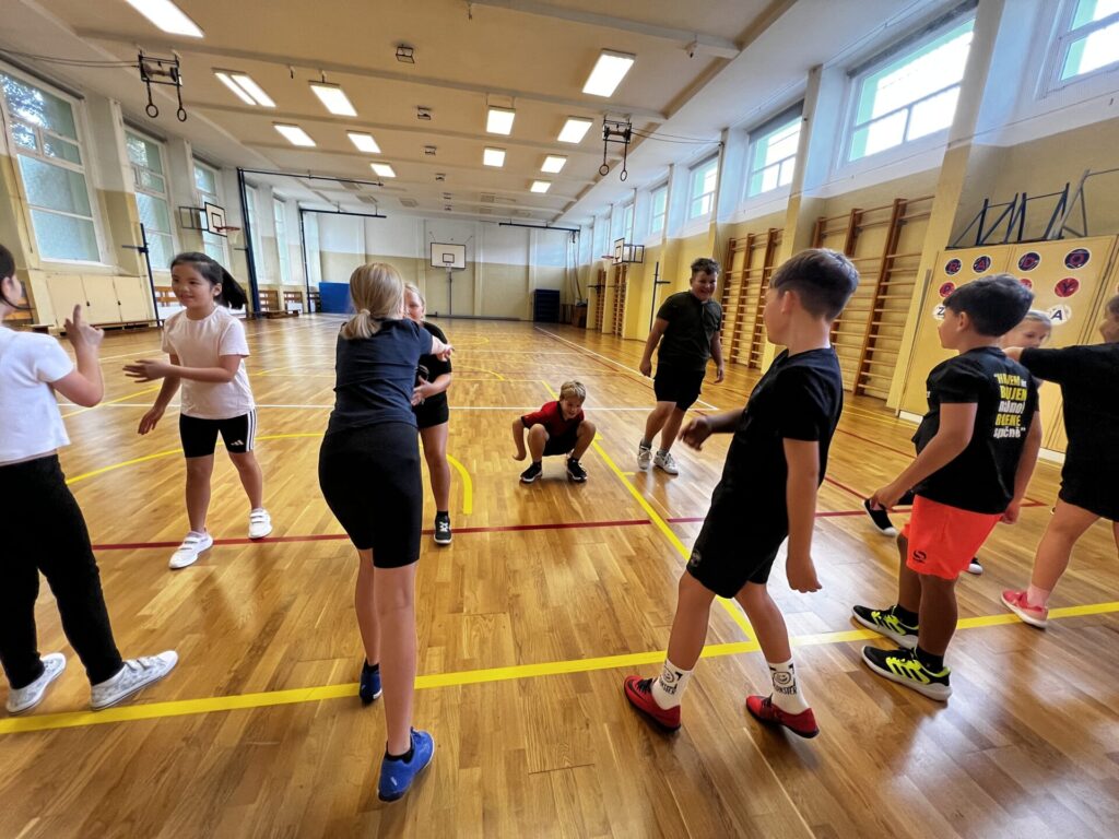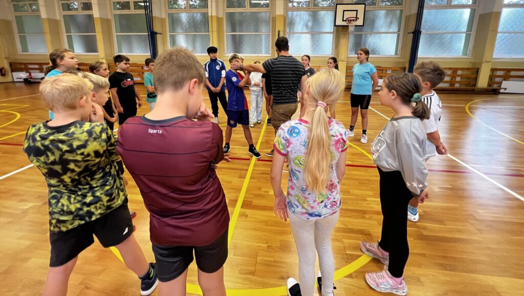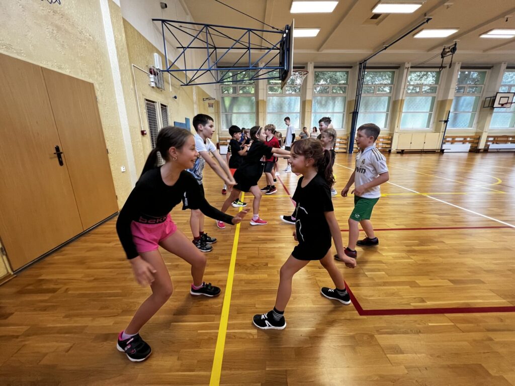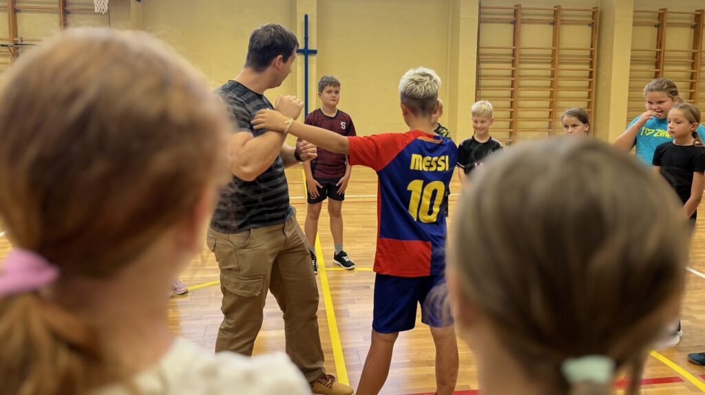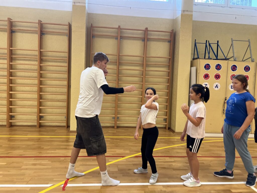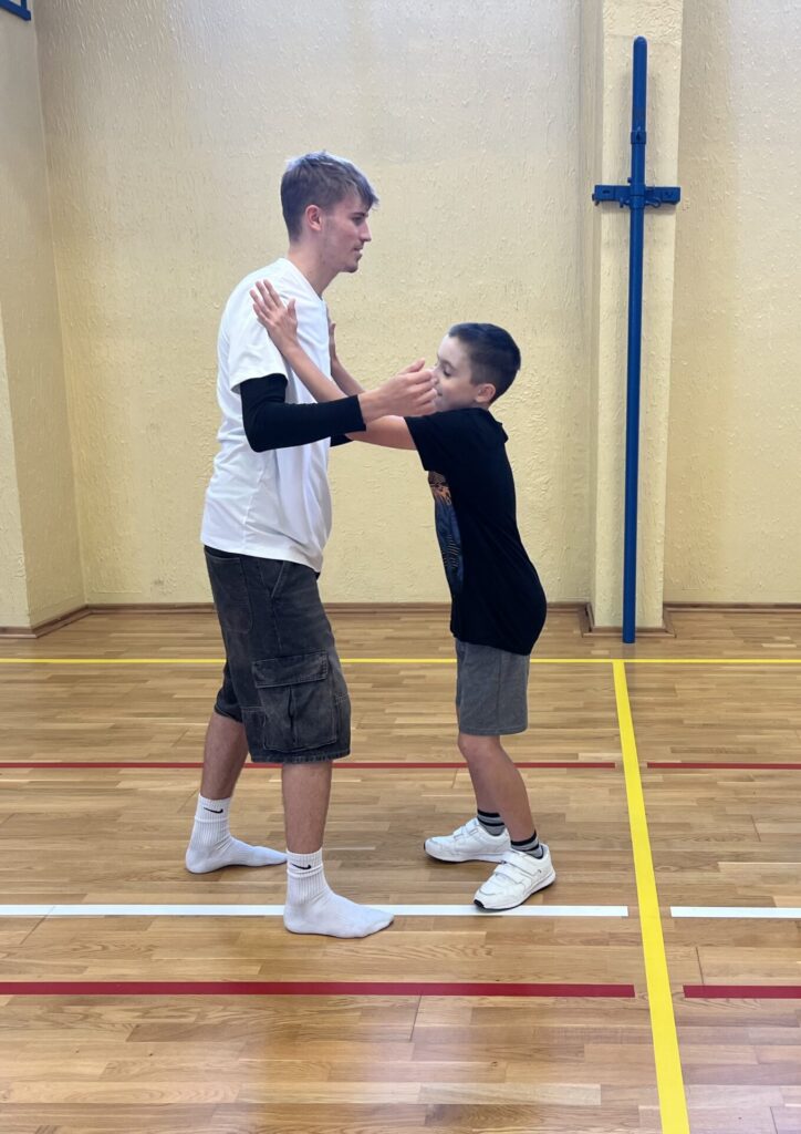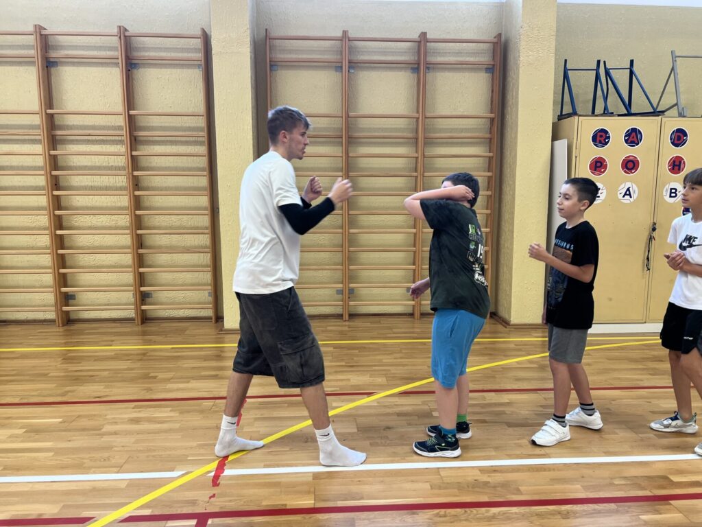 Ve školním roce 2025 / 26 nejen žáci osmého ale i 5. ročníku dvakrát do měsíce absolvují během hodin tělesné výchovy kurz sebeobrany pod vedením odborných lektorů z řad profesionálních hasičů nebo policistů. Zatím máme za sebou první úvodní lekci, která byla spíše seznamovací a teoretická, ale i tak už padla facka na sále 🙂 tedy v tělocvičně.