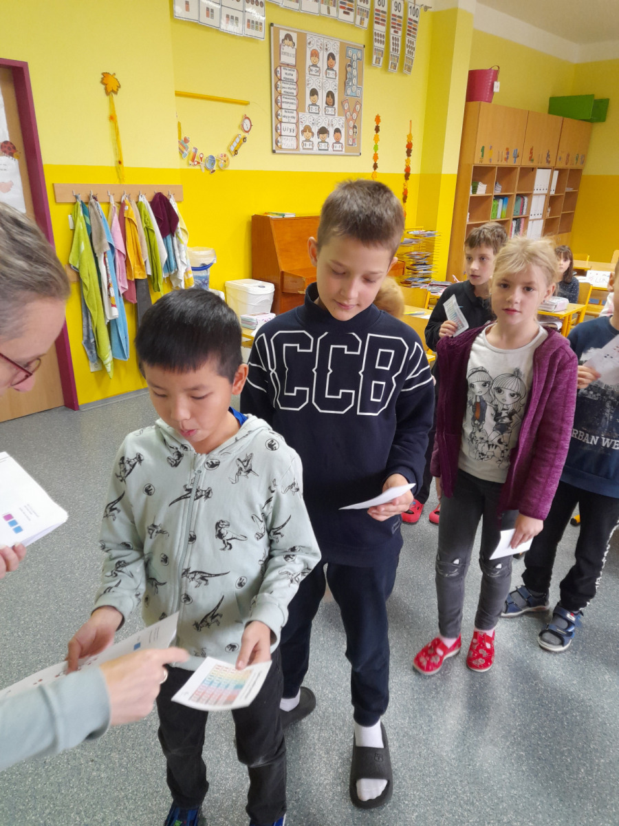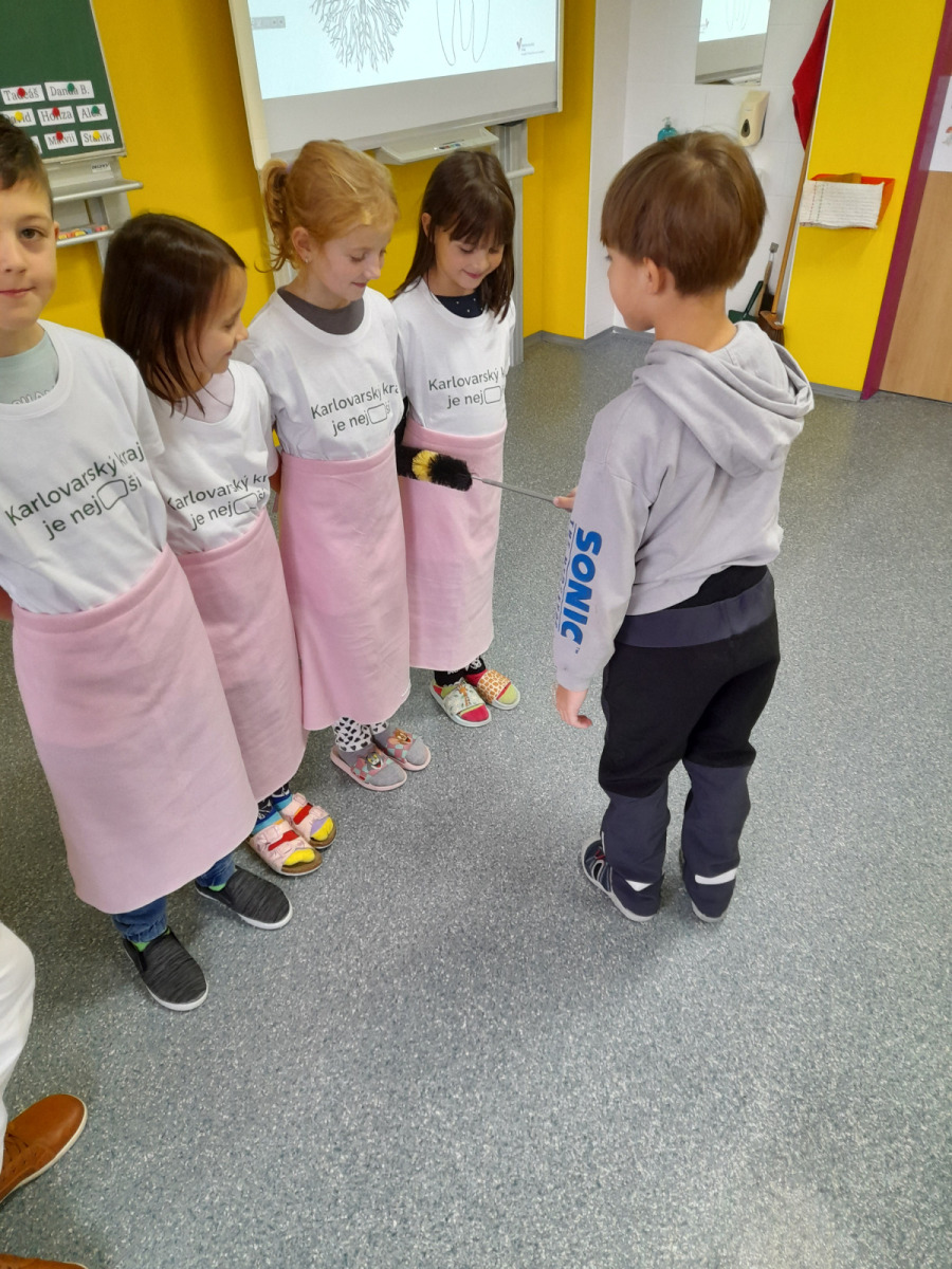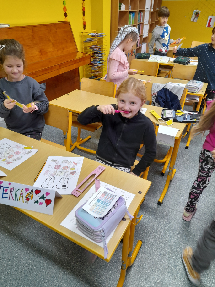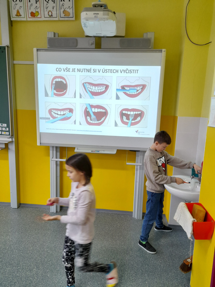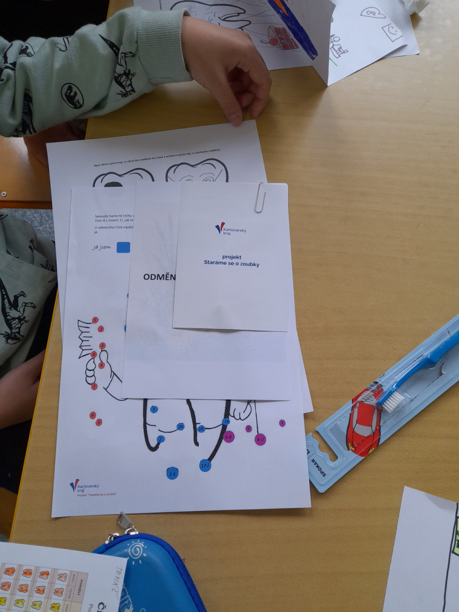 V letošním roce na naší škole probíhá projekt Karlovarského kraje „Staráme se o zoubky“. V současné době máme za sebou dvě lekce a ještě nás další dvě čekají ve druhém pololetí. Jedná se o program, který má žáky prvních a druhých tříd naučit starat se o zuby. Paní Svobodová se svou asistentkou humornou formou seznamuje žáky jak se starat o ústní dutinu. Učí je vybrat si správný kartáček, k čemu slouží kartáček mezizubní i dentální nit. Nedílnou součástí je i získat povědomí o zdravých potravinách a potravinách, které našemu chrupu příliš neprospívají. Děti jsou v hodinách nadšené a velice rády se zapojují do všech činností.