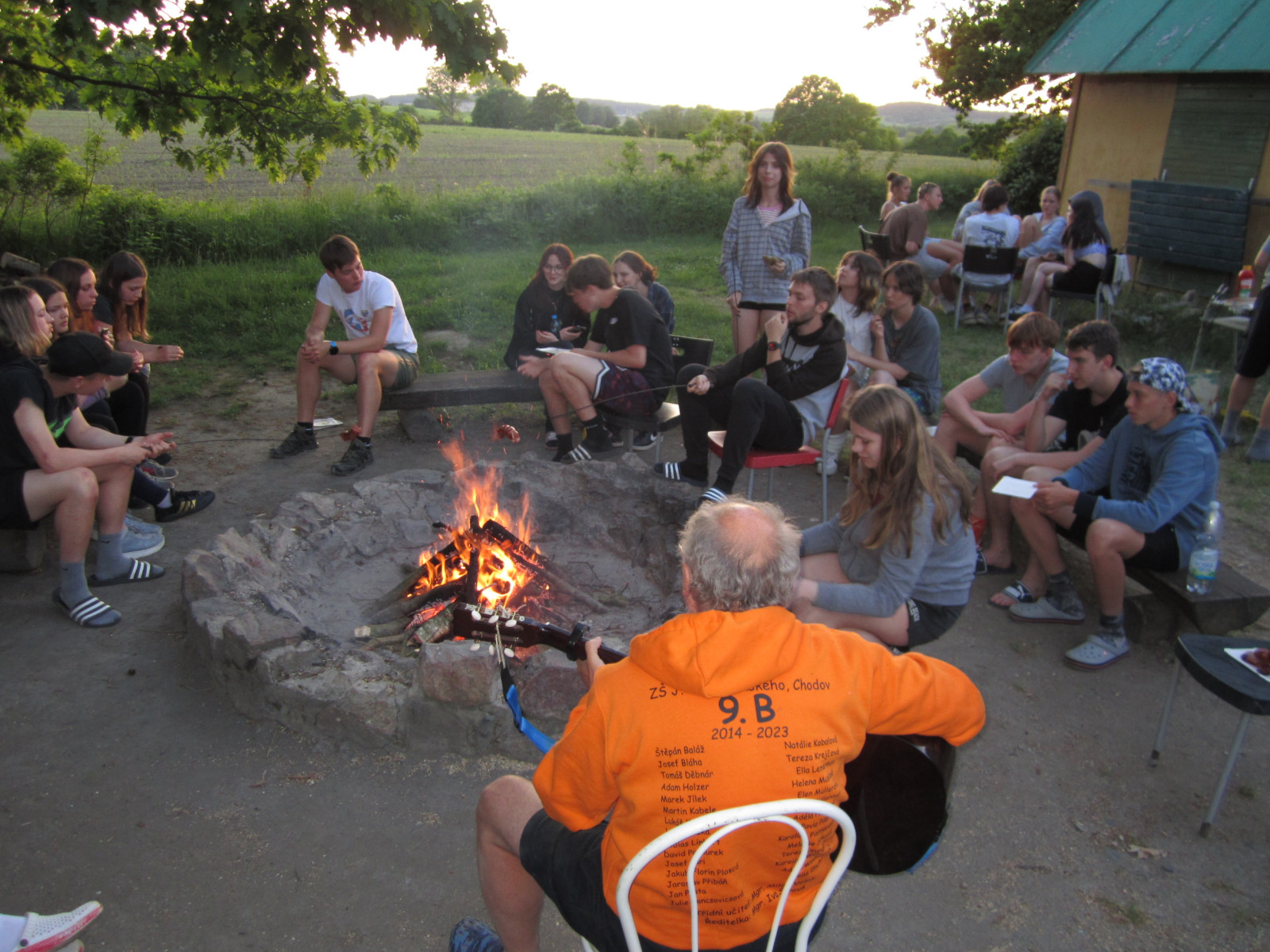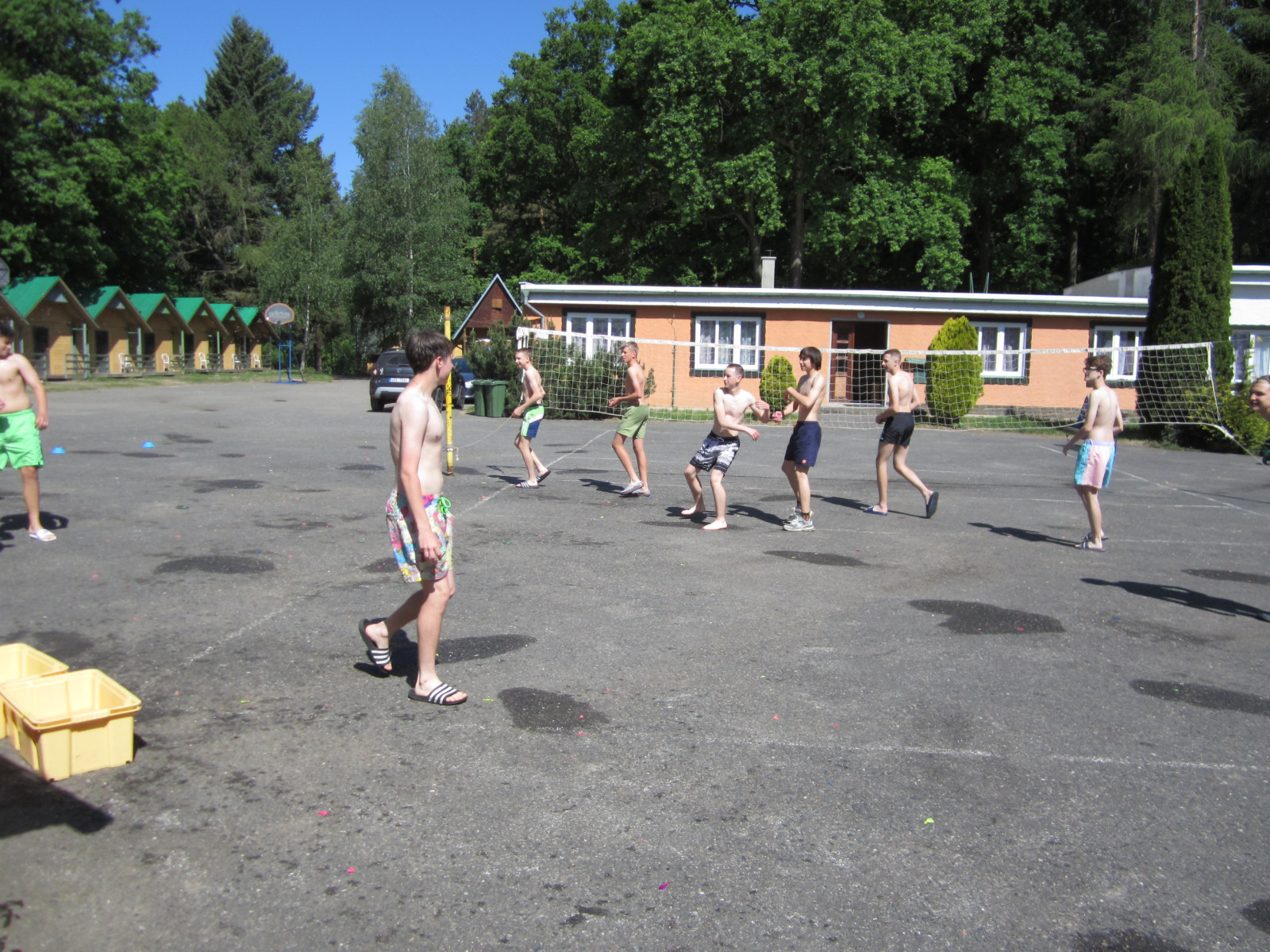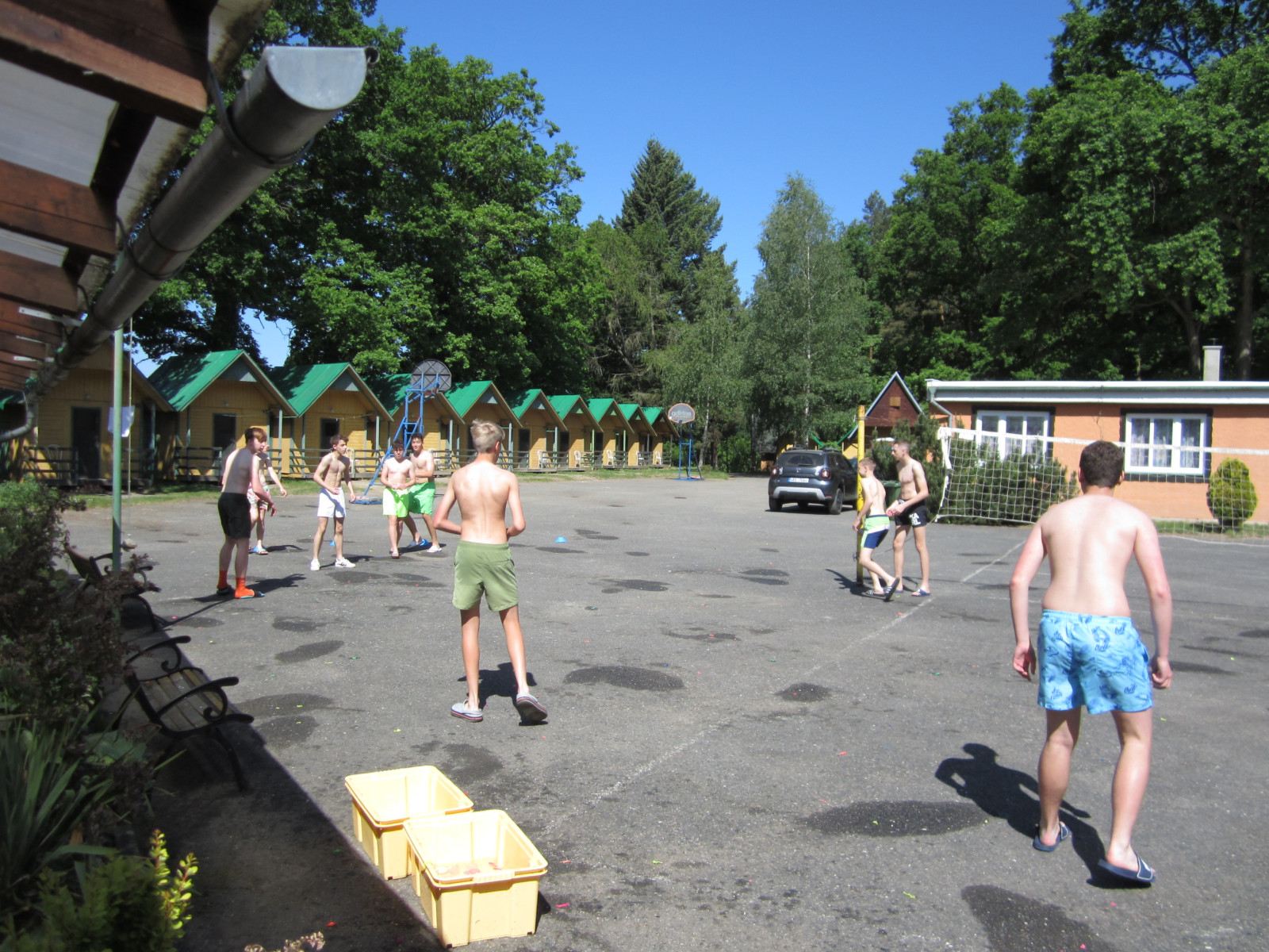 Středa byla ve znamení sportu. Dopoledne si kluci zpestřili turnajem ve fotbalu a bitvou s vodními balónky. Před obědem jsme ještě stihli krátký trénink jízdy na kánoích. Děvčata v dopoledních hodinách navštívila místní paintballovou arénu, kde se utkaly v Reballu. Kluci se do hry Reballu pustili až odpoledne a bylo to opravdu super. Po večeři jsme si ještě stihli zazpívat u ohně a opéct buřty. Zítra nás čeká trochu kultury při návštěvě zámku Zbiroh a muzea hasičské techniky. Odpoledne, pokud vydrží hezké počasí, navštívíme koupaliště v Rokycanech a místní záchrannou stanici pro zvířata. Tak brzy spát, ať na to všechno máme síly…