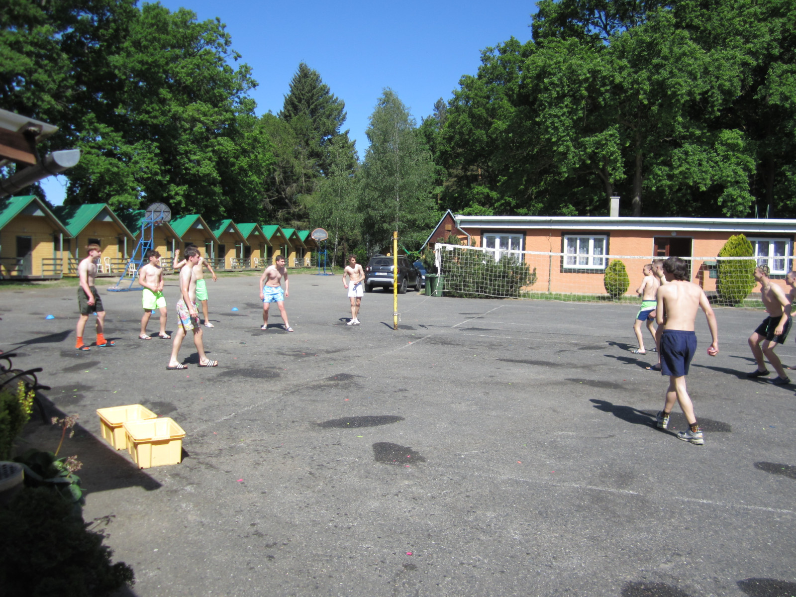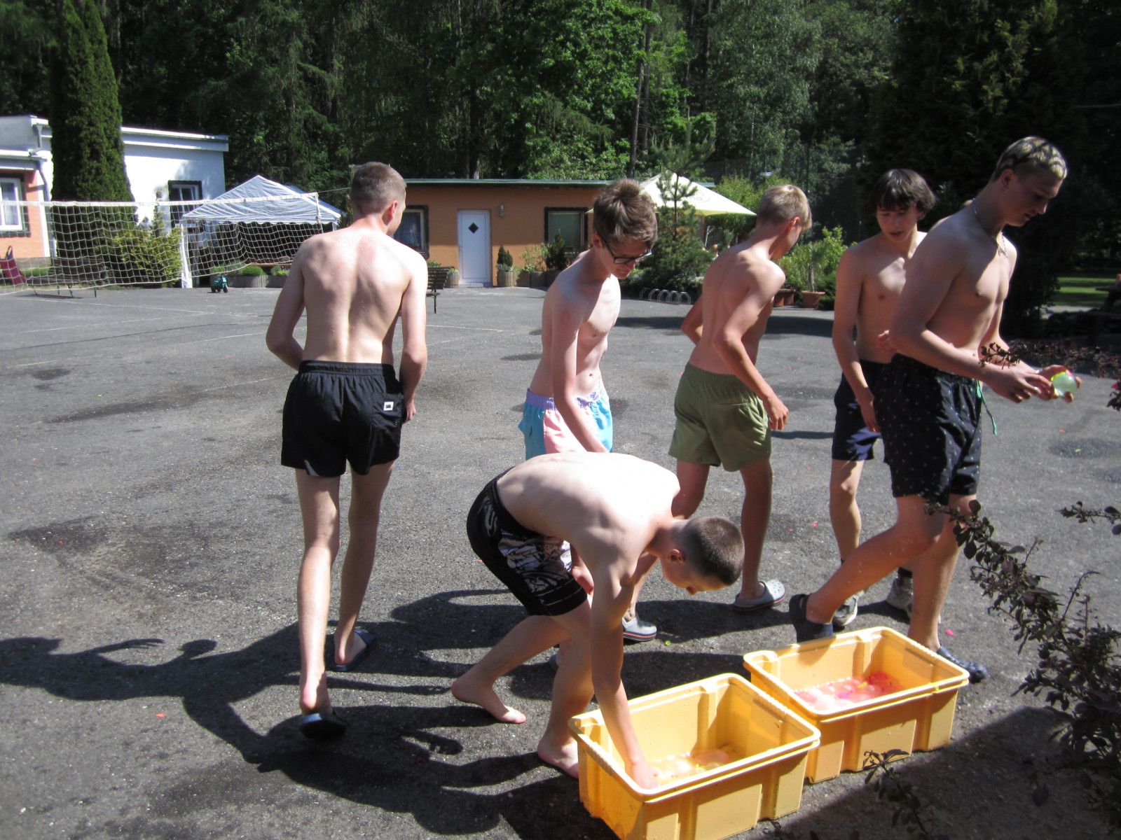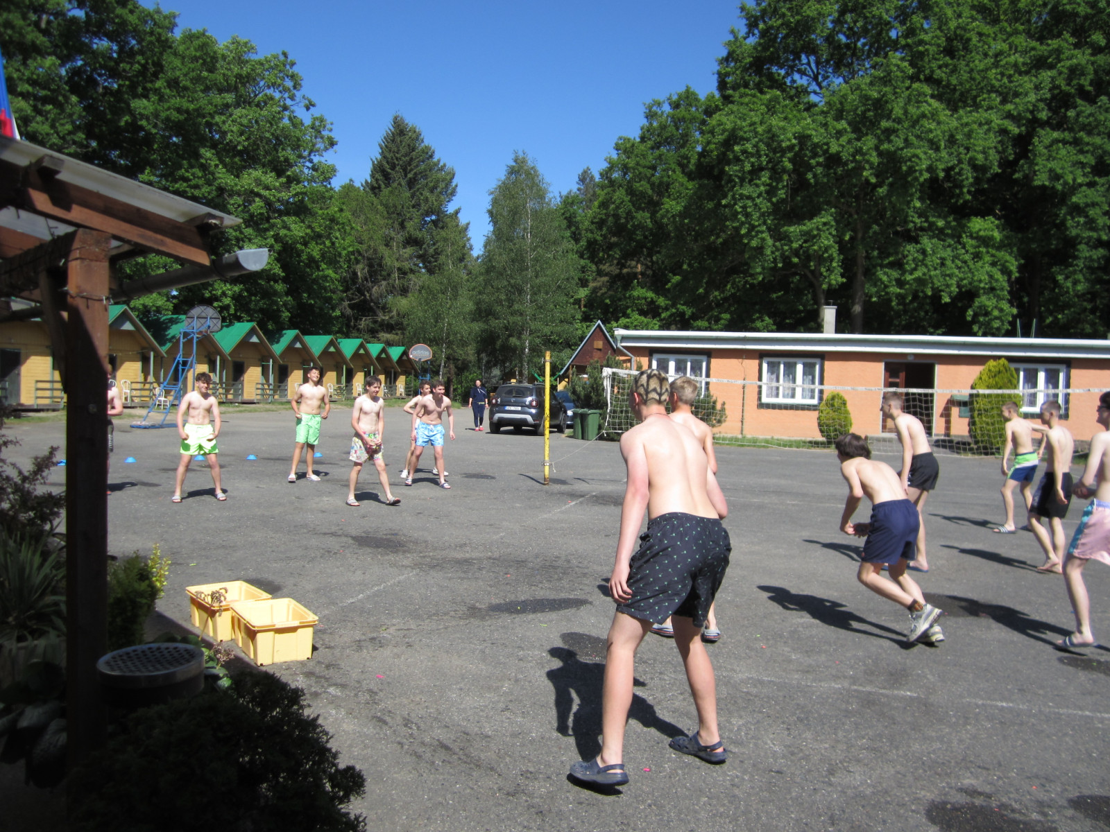 Středa byla ve znamení sportu. Dopoledne si kluci zpestřili turnajem ve fotbalu a bitvou s vodními balónky. Před obědem jsme ještě stihli krátký trénink jízdy na kánoích. Děvčata v dopoledních hodinách navštívila místní paintballovou arénu, kde se utkaly v Reballu. Kluci se do hry Reballu pustili až odpoledne a bylo to opravdu super. Po večeři jsme si ještě stihli zazpívat u ohně a opéct buřty. Zítra nás čeká trochu kultury při návštěvě zámku Zbiroh a muzea hasičské techniky. Odpoledne, pokud vydrží hezké počasí, navštívíme koupaliště v Rokycanech a místní záchrannou stanici pro zvířata. Tak brzy spát, ať na to všechno máme síly…
