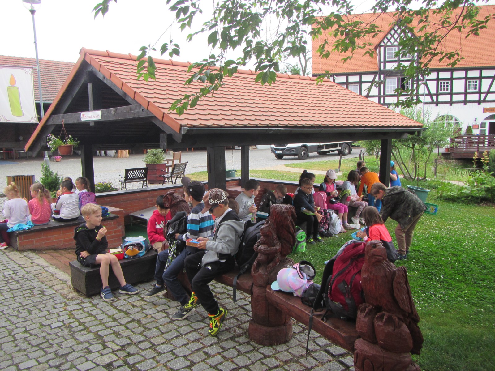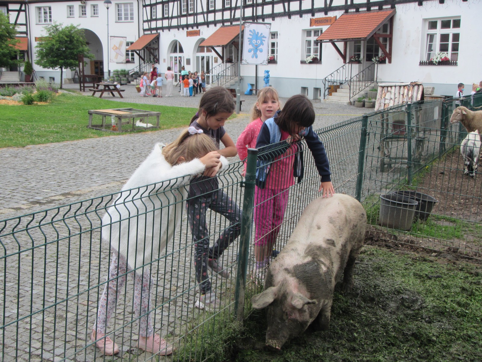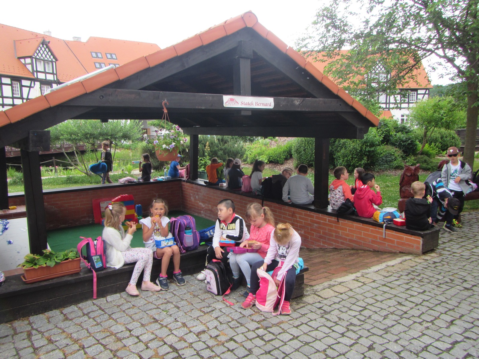 V úterý 22.6. jsme se školáky vyrazili vlakem do Královského Poříčí, abychom se na Statku Bernard zapojili do připraveného programu. Každý ze školáků si v dílničce vyrobil voňavé mýdlo, které doplnil bylinkami či vonnými perličkami. Venku jsme si pohladili všechna možná zvířátka a také jsme je vydatně vykrmili. Granulemi i suchým pečivem, které pro nás k tomuto účelu bylo připraveno. S hladovou radostí nás vítali ovce, kozy, prasata, králíci, kachní rodinka,…. Báječně jsme si užili dopoledne a spokojeně pak opět vlakem vyrazili k domovu.