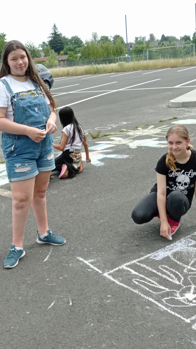 21. 6. 202217. 9. 2022 Miroslava RandýskováPosted in Školní rok 2021/2022 V závěru roku jsme se vydali malovat ven. vzali jsme křídy a vyrazili na parkoviště v Bezručově ulici. Na výsledky naší práce se můžete podívat v galerii. IMG_20220620_111117 Obrázek 7 z 27