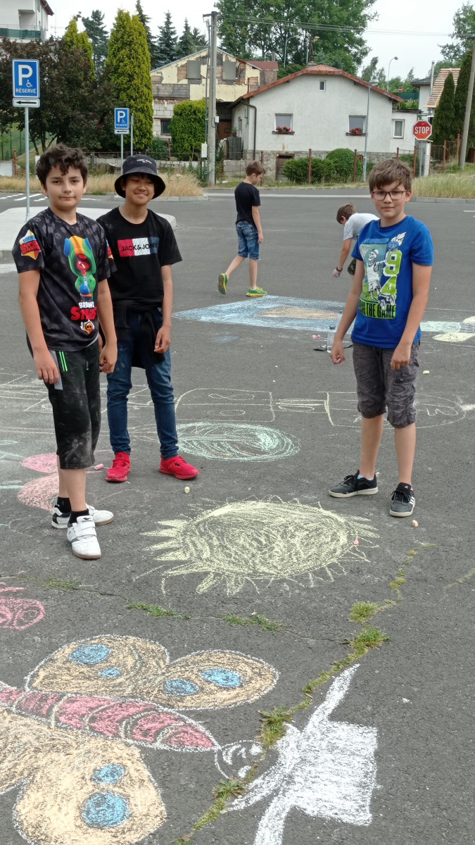 21. 6. 202217. 9. 2022 Miroslava RandýskováPosted in Školní rok 2021/2022 V závěru roku jsme se vydali malovat ven. vzali jsme křídy a vyrazili na parkoviště v Bezručově ulici. Na výsledky naší práce se můžete podívat v galerii. IMG_20220620_111147 Obrázek 10 z 27