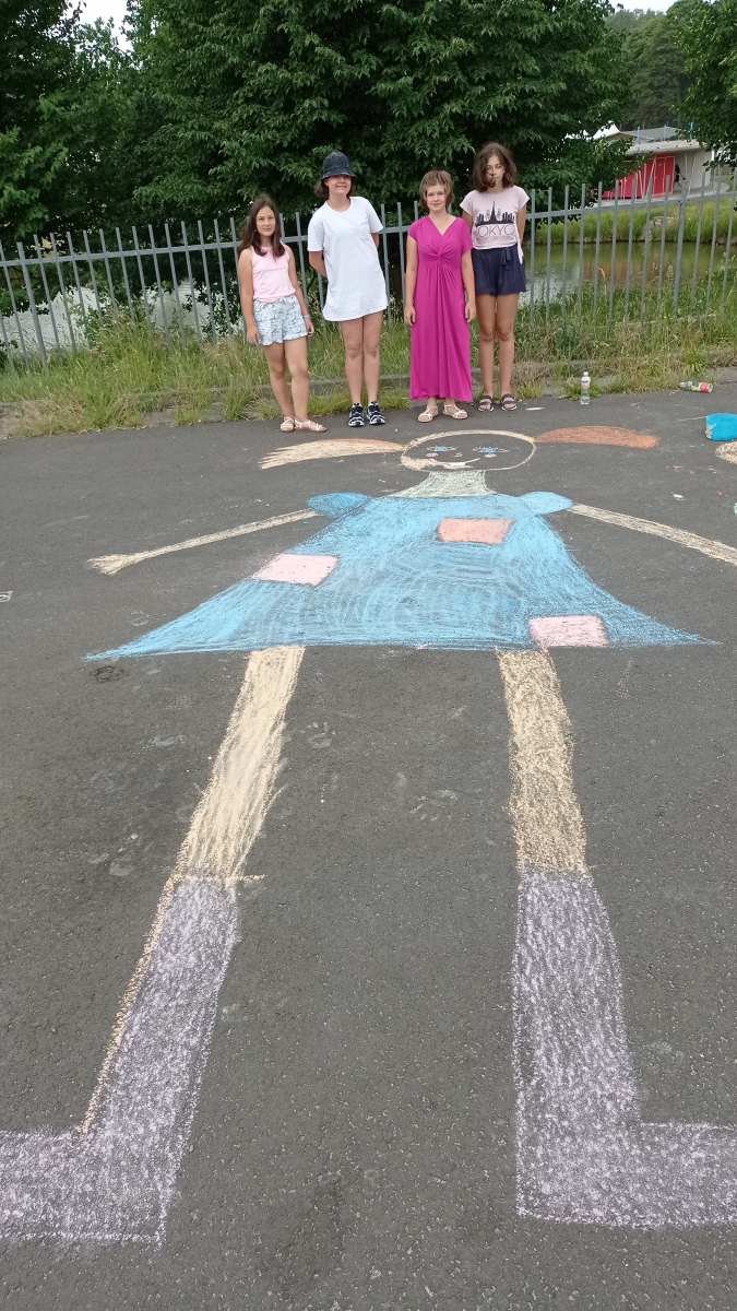 21. 6. 202217. 9. 2022 Miroslava RandýskováPosted in Školní rok 2021/2022 V závěru roku jsme se vydali malovat ven. vzali jsme křídy a vyrazili na parkoviště v Bezručově ulici. Na výsledky naší práce se můžete podívat v galerii. IMG_20220620_111634 Obrázek 11 z 27