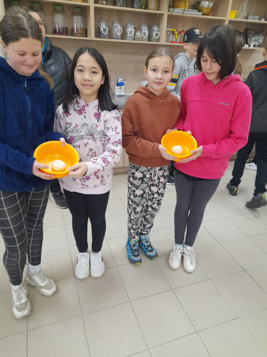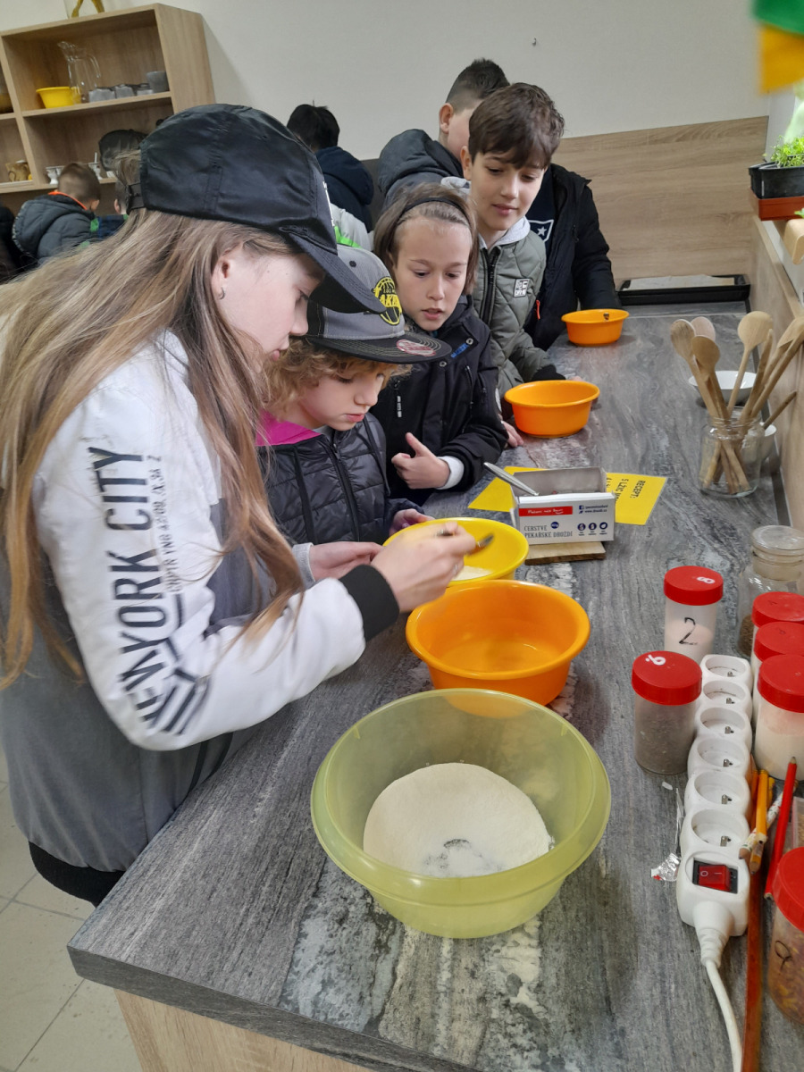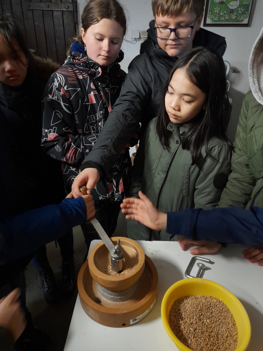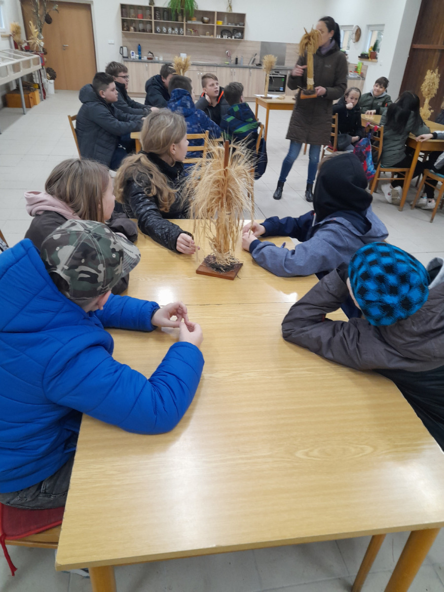 „Zasaď třeba chleba“ je název vzdělávacího programu, který jsme absolvovali 19. 4. 2023 v EKO statku Cheb. Po úvodní části, kdy jsme si zopakovali různé druhy obilovin, stavbu jejich těla a využití – pochopitelně s názornou ukázkou – jsme se pustili do pečení vlastního chleba. Pracovali jsme ve dvojicích. Nejprve jsme do misky dali všechny ingredience, pak jsme uhnětli chleba o velikosti větší housky a nechali jsme ho kynout. Po krátké přestávce jsme chléb lehce navlhčili slanou vodou a dali upéct.